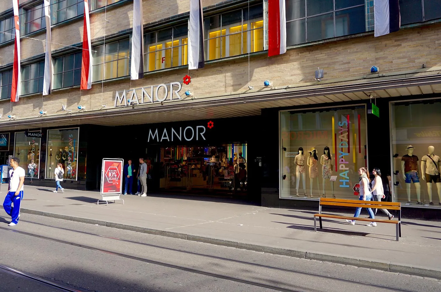 Manor ist mit 59 Warenhäusern, 27 Manor Food Supermärkten und 25 Manora Restaurants die führende Warenhausgruppe der Schweiz. Unter einem Dach bietet Manor ein innovatives und inspirierendes Angebot – von Mode und Accessoires über Beauty und Kosmetik bis hin zu Home, Haushalt, Sport und Spielwaren. FNAC bietet als Partner ein grosses Multimedia- und Elektro-Sortiment. Manor Food hält in einem mediterranen Marktambiente eine reiche Auswahl aus Nah und Fern bereit, unter anderem viele Produkte von lokalen Partnern und hausgemachte Bio-Produkte. Mehr als fünf Millionen Besucher empfängt das traditionsreiche Warenhaus an der Greifengasse pro Jahr und sorgt auf rund 13 000 Quadratmetern auf sieben Etagen für ein Shoppingerlebnis der besonderen Art. Zahlreiche Dienstleistungen machen den Einkauf zum Vergnügen, zum Beispiel der Heimlieferdienst (gratis ab einem Einkauf von 100 Franken in der Stadt Basel beim Vorzeigen der Manor-Karte), das Vorhangatelier inklusive Heimberatung, der Uhrenservice oder der Konfektions-Änderungsservice. Das familienfreundliche Manora Restaurant im 5. und 6. Stock lädt mit einem grossen Angebot zum Verweilen ein und bei schönem Wetter lässt sich die Aussicht über die Stadt auf der grosszügigen Dachterrasse geniessen.