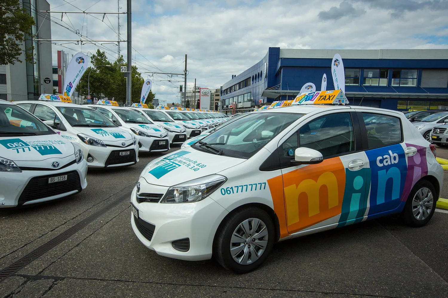 Die Marke mini-cab wurde ursprünglich 1976 gegründet und besteht in der heutigen Form seit 2003. Über 70 bunte Kleinwagen – vorwiegend Toyota Yaris – sind rund um die Uhr an allen Tagen im Jahr präsent. Seit 2003 vermitteln wir die Taxiaufträge mit dem modernsten Datenfunksystem mit GPS-Ortung vollautomatisch an die Fahrzeuge. Zu unseren Dienstleistungen gehören nebst dem klassischen Taxidienst auch Kurierfahrten oder Behindertenfahrten (KBB subventioniert). Bestellen Sie Ihr Taxi per Telefon, vollautomatisch per App, im Internetportal oder mit unserem speziellen Autobookingsystem für Vielbesteller. Neu können regelmässige Kunden sogar per Tastendruck am Telefon vollautomatisch bestellen. Taxigutscheine oder unsere praktische cabcard für Fahrten gegen Rechnung runden das Dienstleistungsangebot ab. Die mini-cab fährt zum unschlagbar günstigen Einheitstarif. Es gilt Tag und Nacht sowie auch an Sonn- und Feiertagen oder ausserhalb von Basel immer derselbe günstige Tarif. Steigen Sie ein – wir sind rund um die Uhr für Sie da.