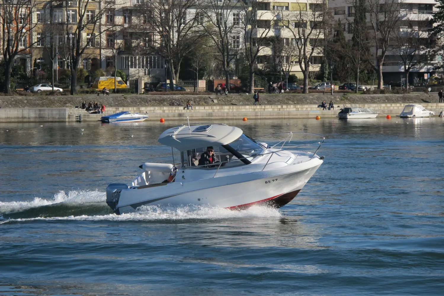 Eine Fahrschule spezialisiert für die Bootsprüfung Motorboot Kategorie A. Das Motorbootfahren auf dem Rhein ist in vieler Hinsicht eine spezielle Herausforderung. Es hat das etwas „Seemännische“, welches durch die Verbindung nach Rotterdam ein nautisches Ambiente verleiht. Der Pegelstand und die Strömung wechseln je nach Regenfällen in den Alpen. Das Verhalten auf dem Fluss ist jeden Tag verschieden. Wir lernen schnell wie wir das Fährengleit-Prinzip anwenden und das Boot stabil halten können.
