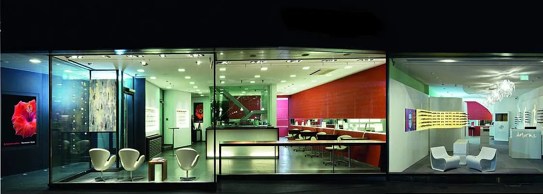 Ramstein Optik ist einer der grössten selbständigen Optiker der Schweiz, weit über Basel hinaus bekannt für exklusive Brillenmode, aber auch für Kompetenz in allen optischen Belangen – und für kunstvolle Präsentationen, im Schaufenster und auf den Plakatwänden. Die Sattelgasse zwischen Markt und Andreasplatz ist zwar nur eine kurze Gasse, aber es gibt viel zu sehen. Neben dem eleganten Laden gibt es seit 2013 einen eigenen Raum für Sonnenbrillen und funktionale Sportbrillen – und mehr Platz für Kundinnen und Kunden, um welche sich die zwei Dutzend Ramstein Optikerinnen und Optiker kümmern. Ramstein Optik geht aber weit über das Erdgeschoss hinaus. In den beiden Sous-sol gibt es Platz für Beratung und für Sehtests in speziellen Messräumen und im ersten Stock ist die Kontaktlinsenabteilung ein echtes Kompetenz-Zentrum mit eigenem Empfang. Ebenfalls im ersten Stock befindet sich das Atelier. Bei Ramstein werden alle Gläser in dieser Werkstatt zugeschliffen und in die Fassung eingesetzt. Hier lernen Lehrtöchter und Lehrlinge das Optiker-Handwerk von Grund auf.