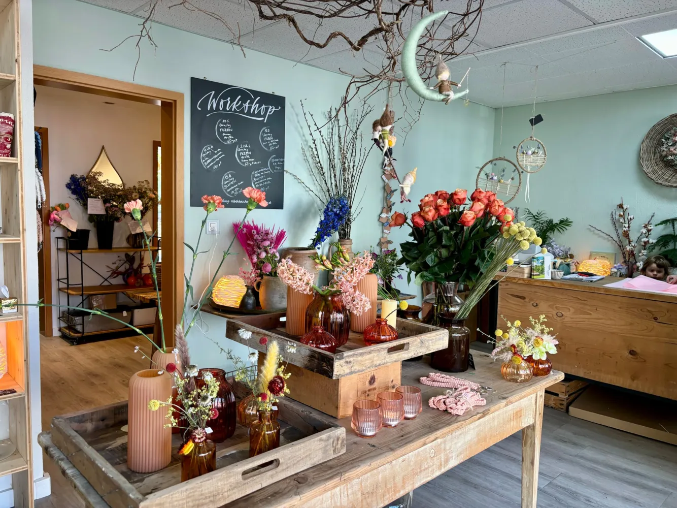 Die bunte Floristin Rebekka Schneuwly ist mit ihrer Handwerkstatt in ein geräumiges Ladenlokal an der Wanderstrasse umgezogen. Mit ihrem nun 5 köpfigen Team bietet sie nebst ihren bunten Kränzen, Blumen to go, Trockenblumen und vielem Mehr auch vielseitige floristische Workshops an. Die gemeinsame Kreativität steht im Vordergrund, so hat sich die bereichernde Zusammenarbeit mit Caroline Zimmermann (Süssholz) ergeben, die Workshops für Gross und Klein mit ihren niedlichen Filz-Figuren anbietet.