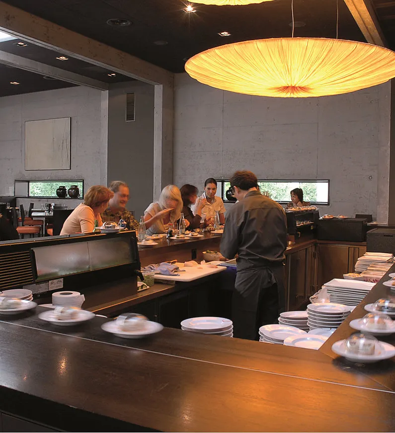 Eine besondere Attraktion im NOOHN ist die edle Sushi-Bar, in deren Mitte die Speisen von internationalen Sushi-Mastern vor den Gästen frisch zubereitet werden. Etwas NOOHN für zuhause oder für den kleinen Hunger zwischendurch gibt es ausserdem auch als Take-Away-Angebot. Ausserdem befindet sich beim Eingang eine eindrückliche Bar mit grosszügig angelegter Lounge, wo es reichlich Platz für ein gemütliches Treffen mit Freunden gibt und bei guter Witterung lädt unsere Dachterrasse zu weiten Blicken über Basel ein.