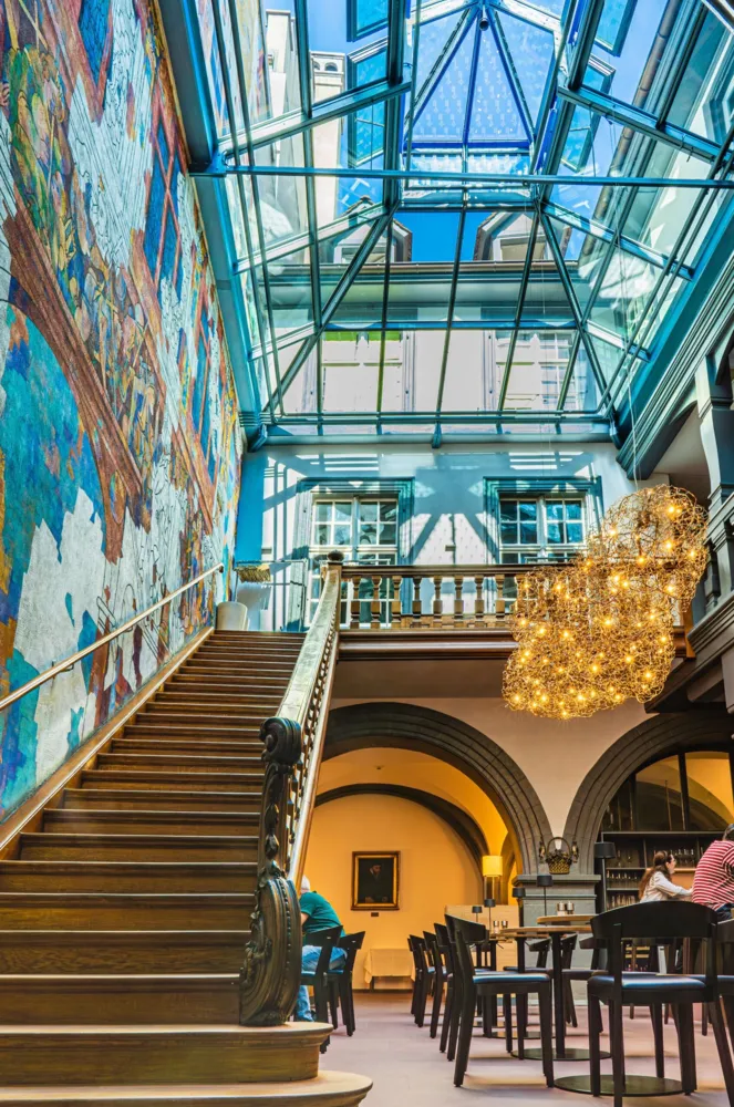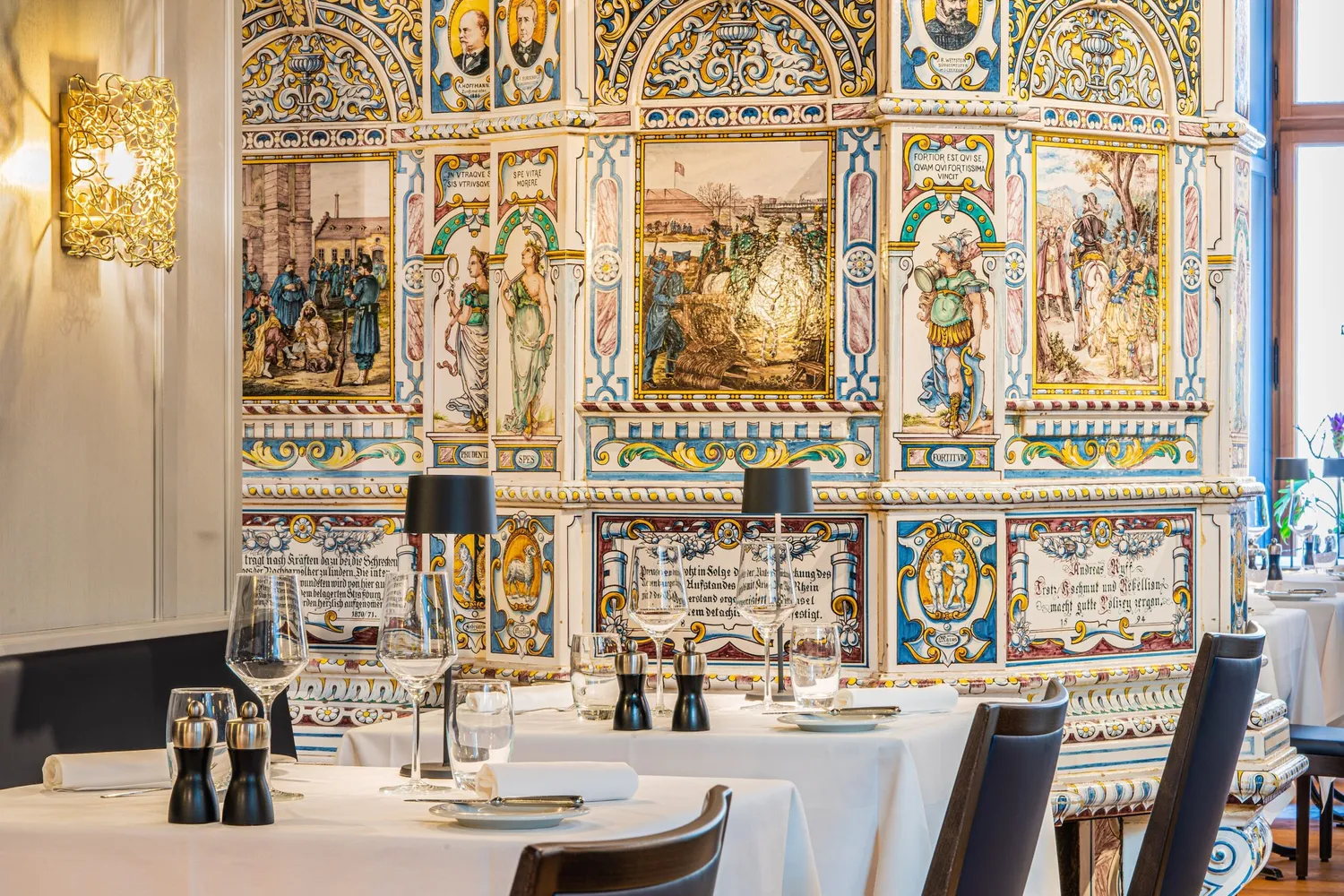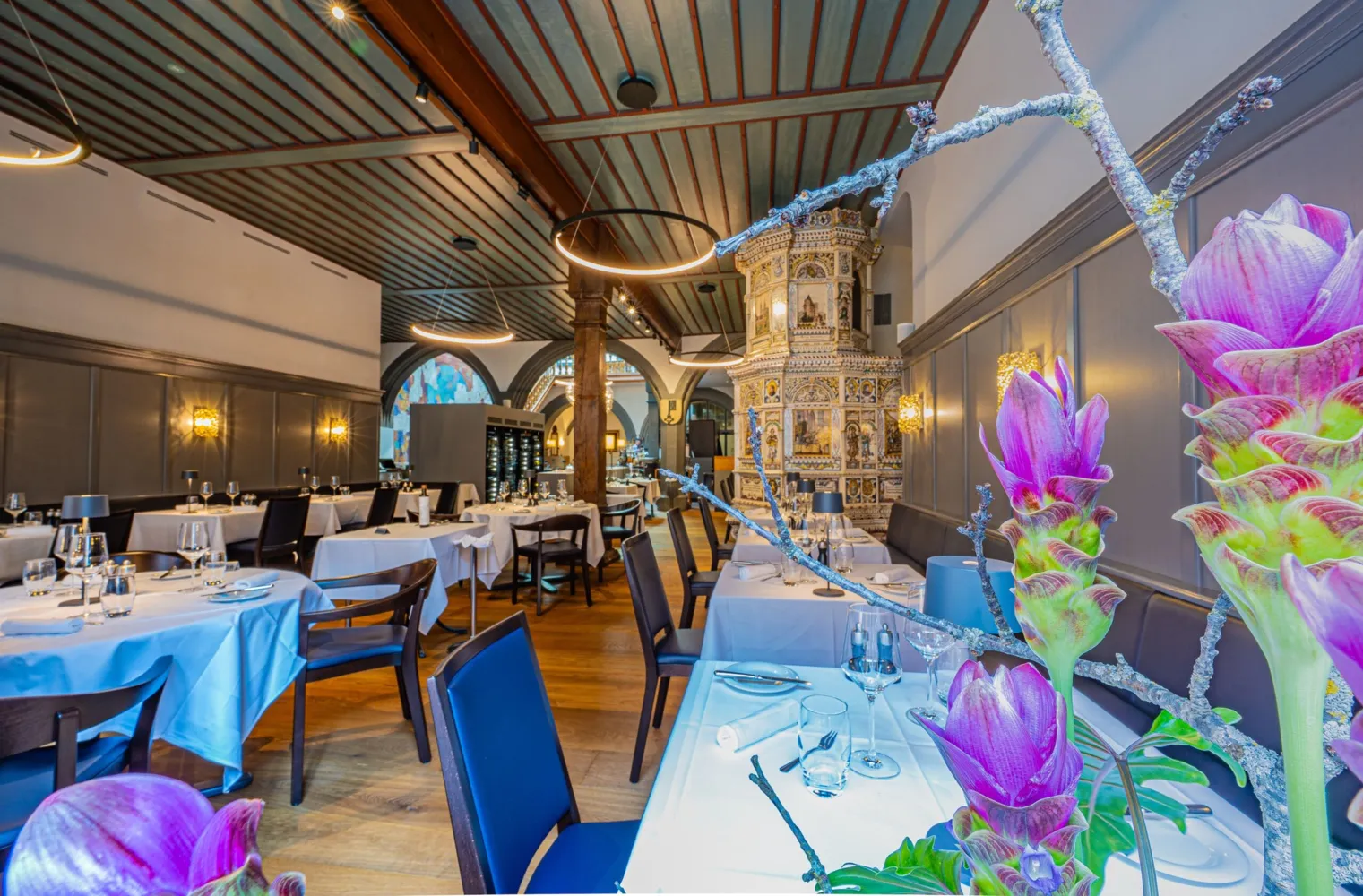 Es gibt viel zu sehen, sei es das Wandfresko von Samuel Buri, das moderne Glasdach über dem Innenhof oder auch der eindrückliche Kachelofen mitten im Restaurant. Die Gastgeber und das eingespielte Team empfangen im lockeren Bistro-Bar-Bereich zum Lunch, zum Afternoon-Tea oder zum Fleischfondue und im Restaurant Zunftstube zu Business Lunch und Fine Dining. Vor dem Haus befindet sich ein lebhaftes Boulevardrestaurant, das mit den ersten Sonnenstrahlen im Frühlings eröffnet wird und zum Verweilen im Freien einlädt.