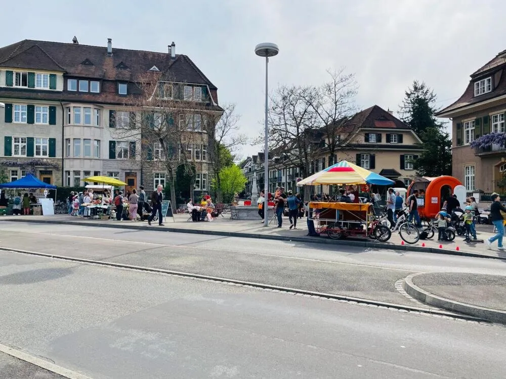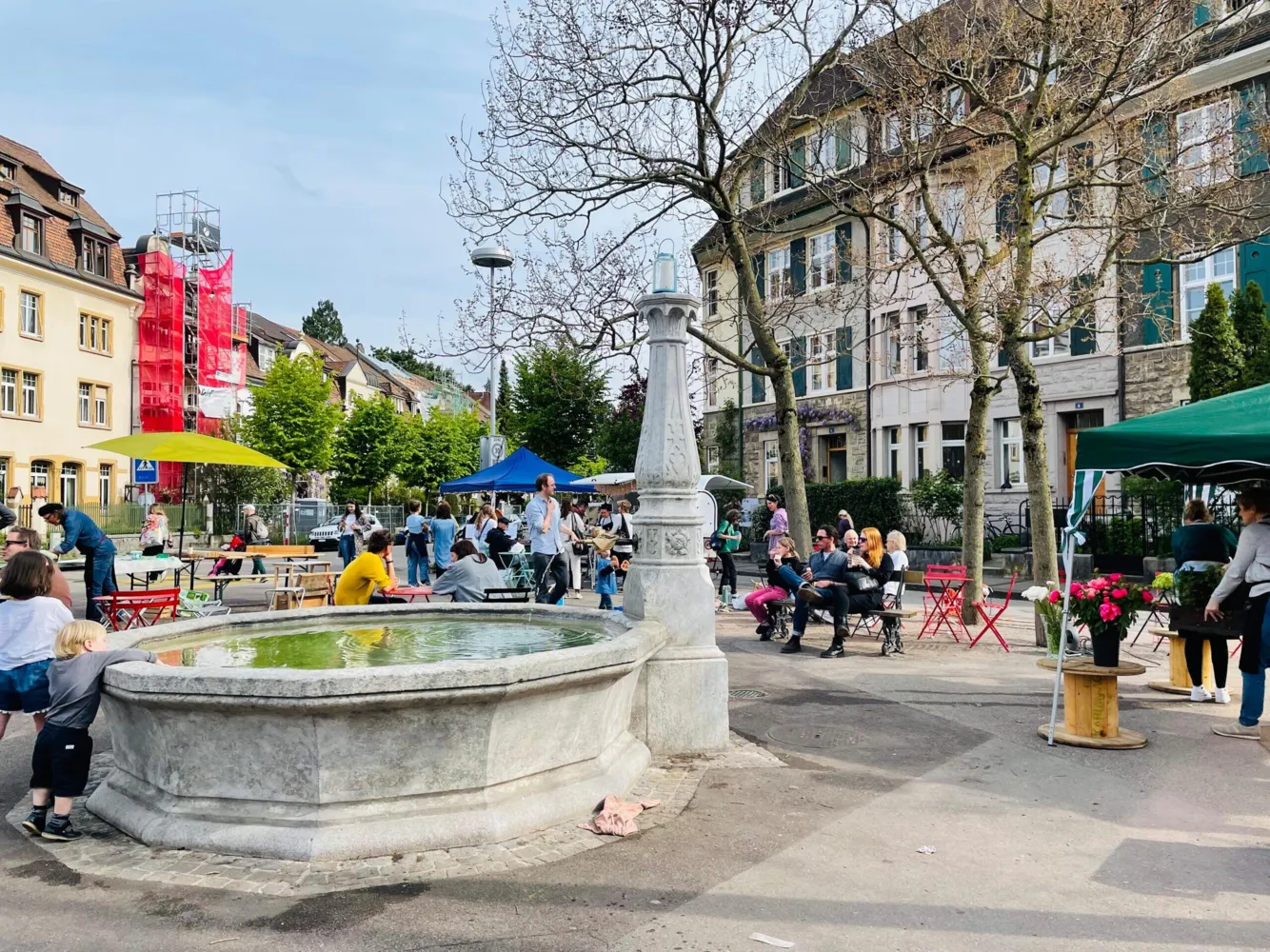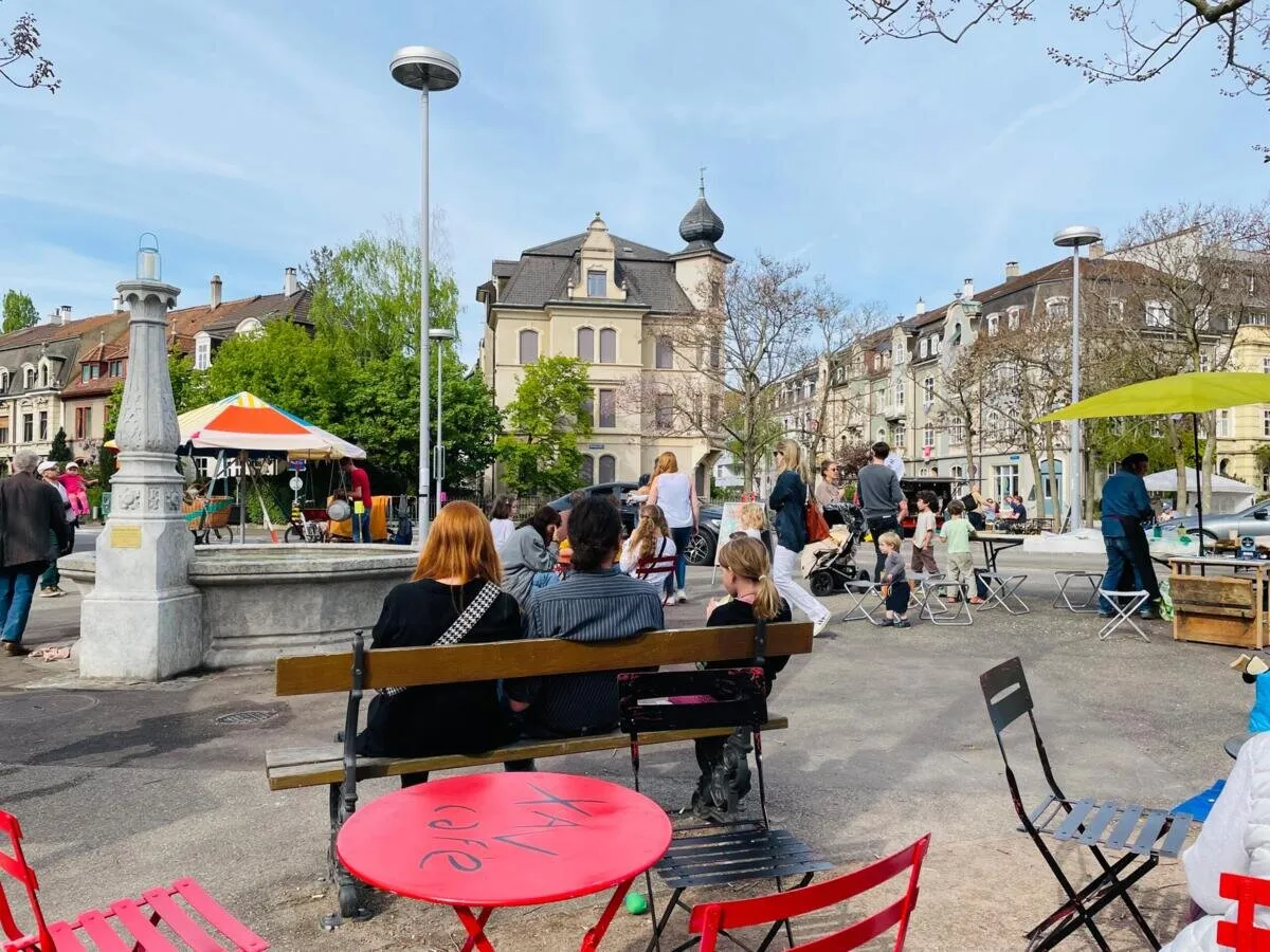 Der Rütimeyerplatz befindet sich im Zentrum des Wohnquartiers Bachletten. Da ist ein Brunnen, der im Sommer zum Baden einlädt, da sind Bäume, die Schatten spenden, da sind Sitzbänke, die zum gemütlichen Plaudern einladen. Jeden Dienstagmorgen findet der Dienstagsmarkt statt – jeden ersten Freitag des Monats lockt der Abendmarkt mit regionalem Angebot, Speis & Trank und geselliger Atmosphäre. Zu Weihnachten sorgt ein Weihnachtsbaum für festliche Stimmung im schönen Wohnquartier.