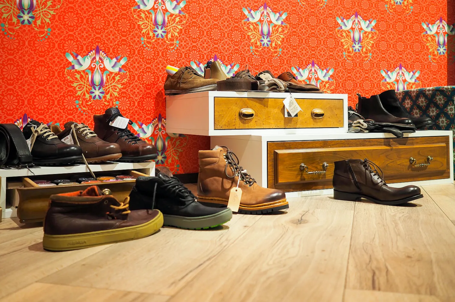 Ein interessantes Angebot aus einem gekonnten Mix. Von weiblich verspielt über modern bis hin zu edgy Streetstyle. Schuhe und Accessoires, die es sonst nirgends gibt. Und zwar für Sie und Ihn.