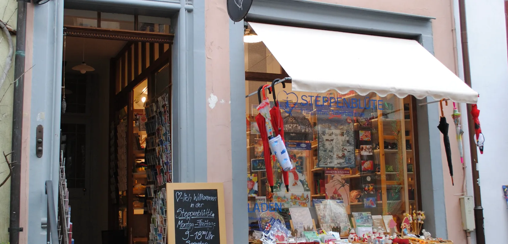 Im Herzen der schönen Basler Altstadt präsentiert sich die Boutique Steppenblüte als kleine Geschenkoase. Für alle Generationen ist etwas Schönes dabei: Spielwaren Handmade aus Holz, Blachentaschen, Etuis, Papeterie, Kerzen, Karten ... und vieles mehr.