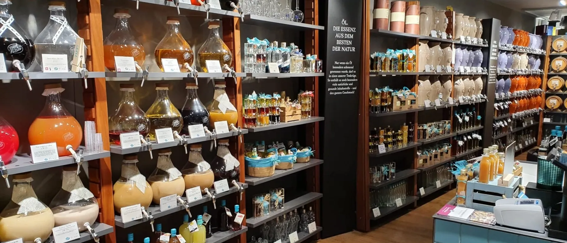 Im Herzen Basels befindet sich unser Spezialitätengeschäft. Wir verfügen über hochwertige Speiseöle (Olivenöle, Nussöle, etc.), Balsam Essige (klassisch bis ausgefallen), Liköre (süsse Verführungen), Edelbrände (auch aus der Region), Grappa und Whisky.
