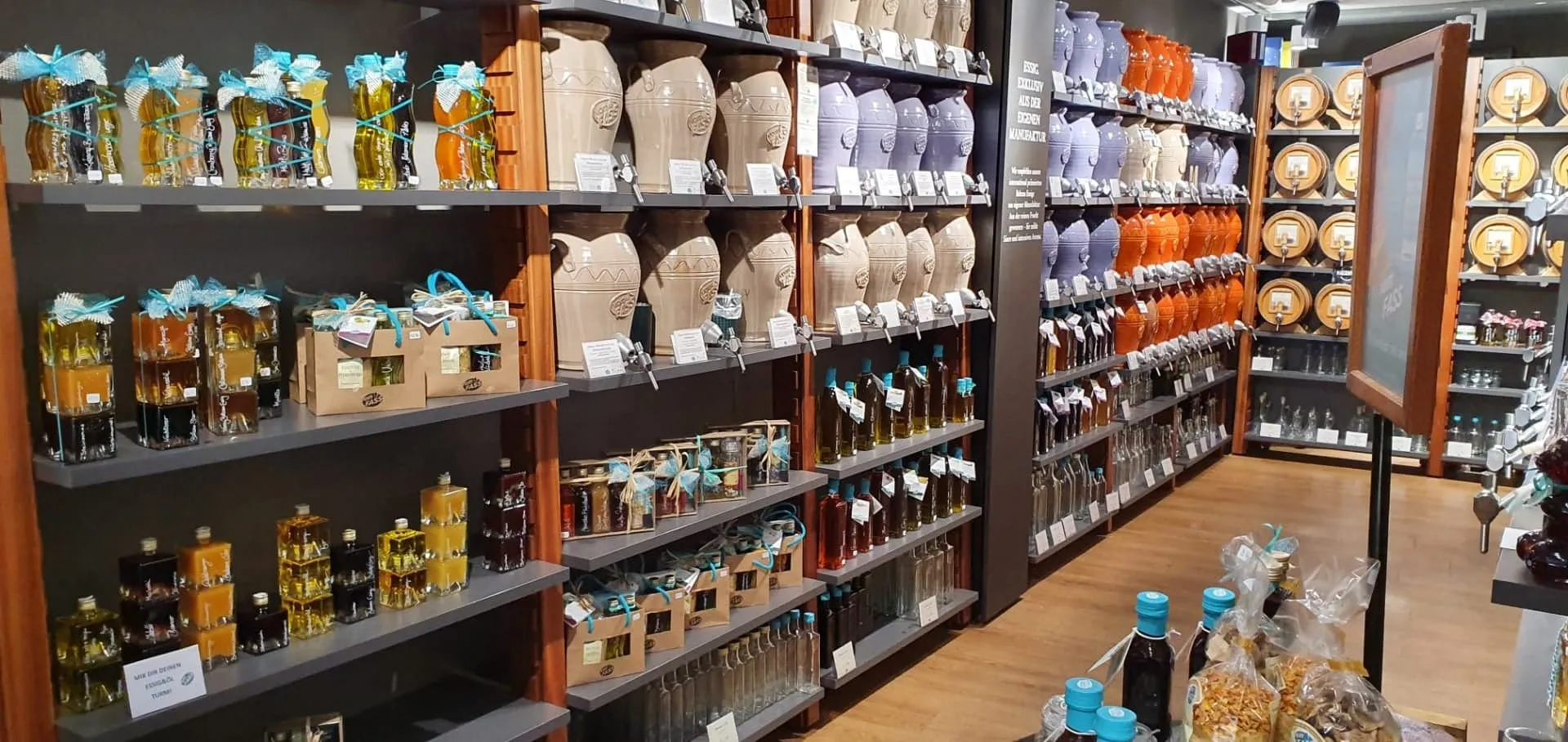Vom Fass verfügt über hochwertige Speiseöle, Essige, Liköre, Edelbrände, Grappa und Whisky.