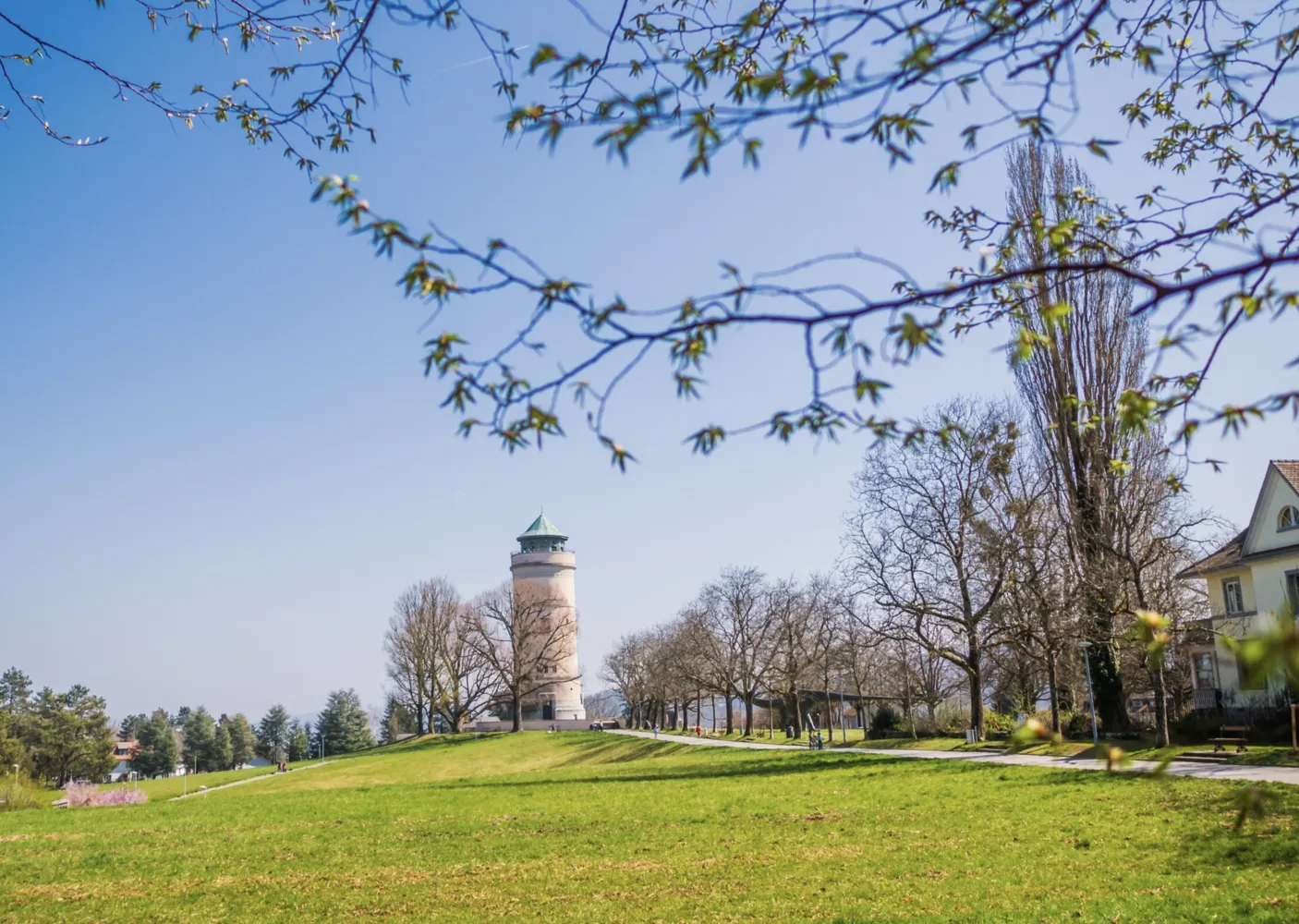 Der Wasserturm mit seinen umliegenden Wiesen ist eine der attraktivsten Grünanlagen in Basel.