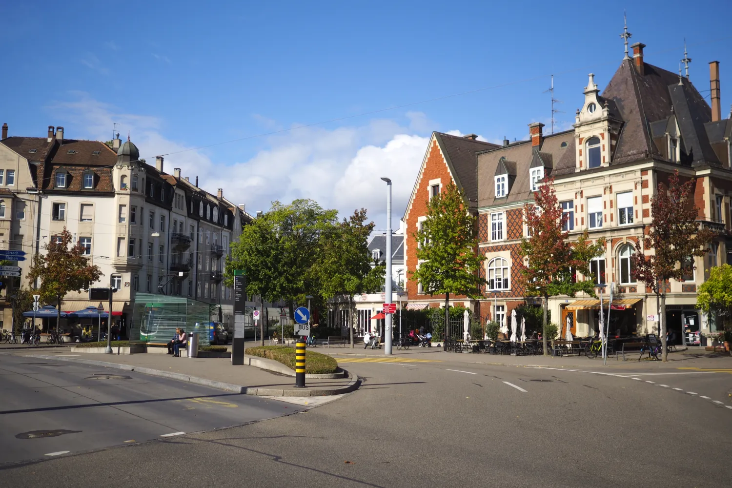 Der Wettsteinplatz im Kleinbasel ist ein wichtiger Knotenpunkt im Kleinbasel, mit zahlreichen charmanten Restaurants, Cafés und Geschäften.