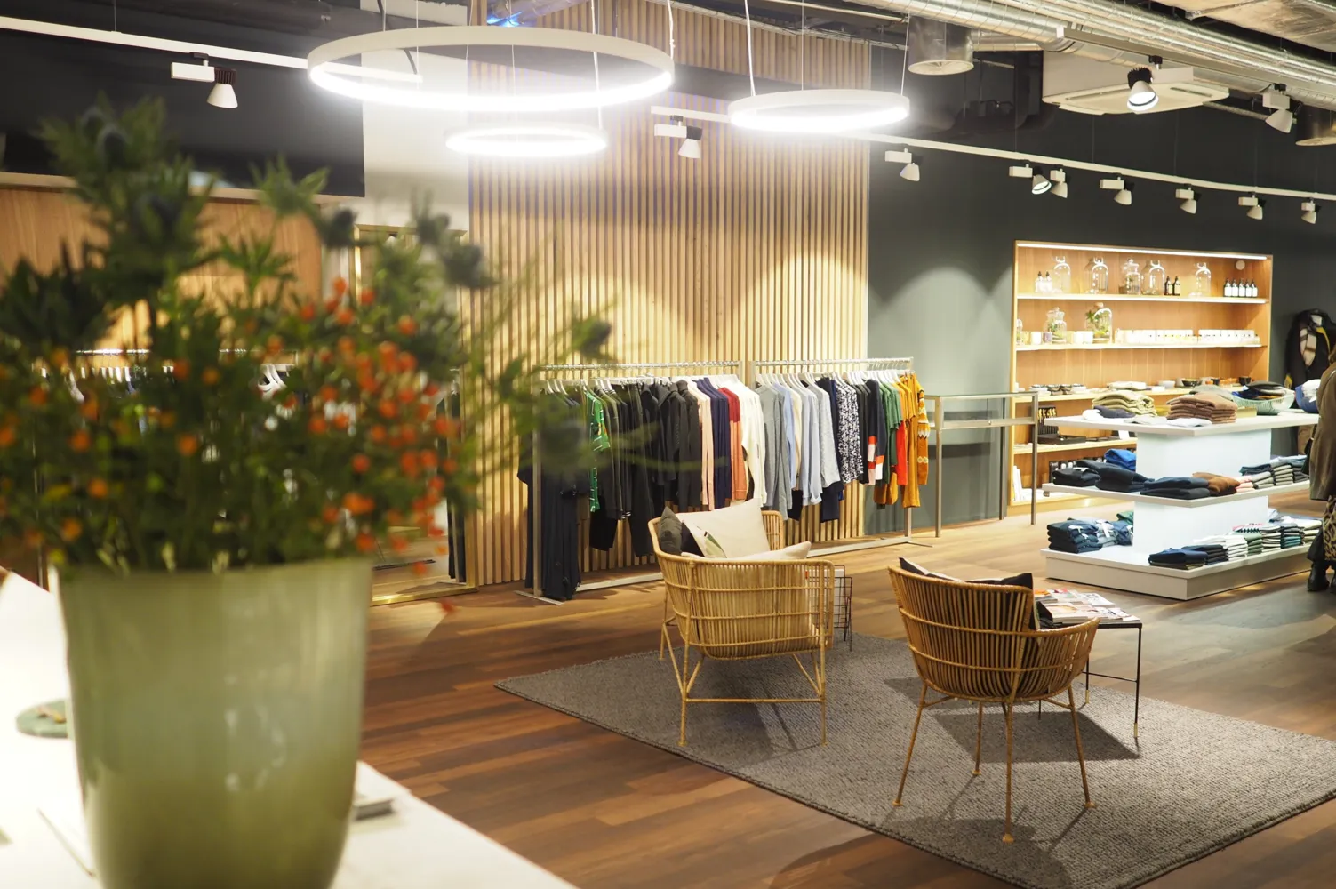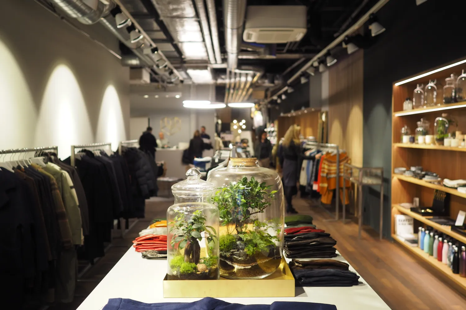 Auf 175m² kommt das ausgewählte Damen-, Herren- und Accessoires-Sortiment noch besser zur Geltung. Etablierte Marken wie Barena, Hartford, Filippa K., Sèssun und Stone Island bilden die Basis. Aufstrebende Labels wie A.P.C., Holzweiler, Oliver Spencer und Margaret Howell komplementieren das kontinuierlich entwickelte Sortiment.