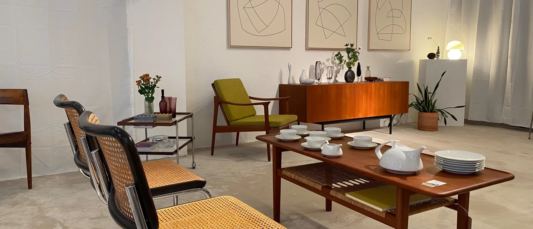 Eigentlich suchte Nora Gysin lediglich ein paar schöne Möbel für ihre WG mit Tizian Aellig. Sie fand dann jedoch weit mehr, als in eine einzige Wohnung passte. Und überdies entdeckte sie ihre Leidenschaft für die Formsprache des Mid-Century, dem Stil, der sich durch klare Linien, sanfte Kurven und geometrische Formen auszeichnet. Bis heute – fast 10 Jahre später – liebt Nora das moderne Design von den 1930er bis in die 1970er Jahre. «Ich suche die Stücke in ganz Europa zusammen, vieles finde ich in Skandinavien», erzählt sie und blickt in den luftigen, hellen Raum, als könnte sie ihr Glück noch gar nicht richtig fassen: Endlich kommen ihre Trouvaillen zur Geltung, bekommen den Platz, den sie verdienen, anstatt bloss im dunklen Lager auf neue Besitzer zu warten.