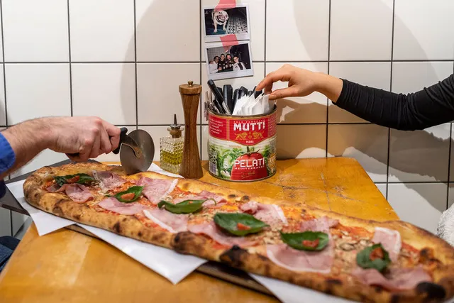 Auch hier sitzt man gemütlich an den rustikalen Holztischen, teilt leckerste Pizza am Meter und schlürft feinen Espresso, oder eben Negroni.