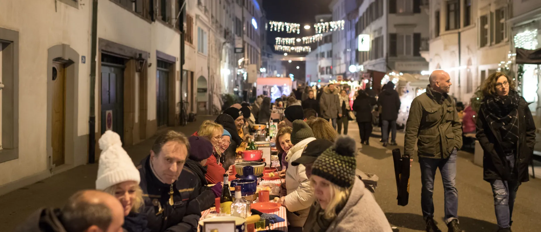Am 29. November bittet die Adväntsgass wieder zu Tisch. Genauer: zum gemeinsamen Fondueplausch mitten auf der Rheingasse.