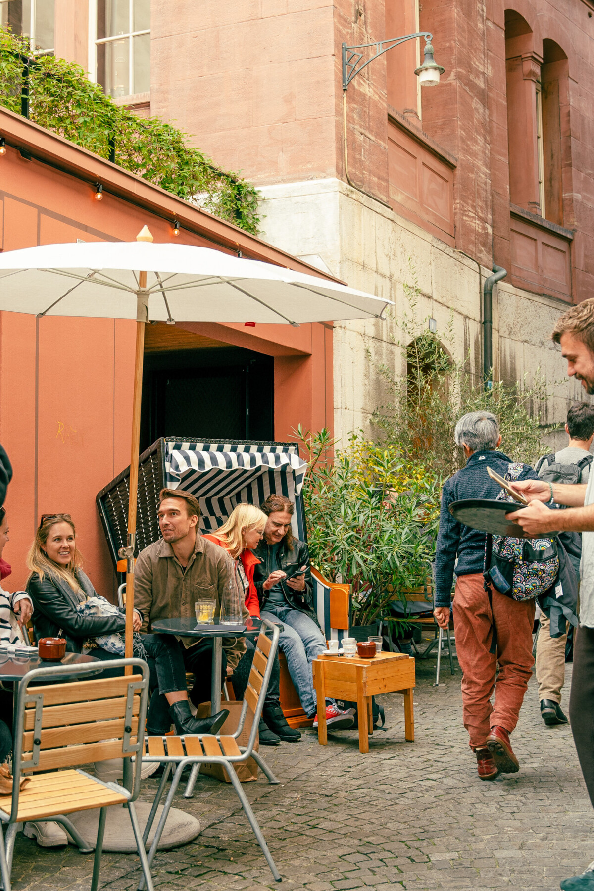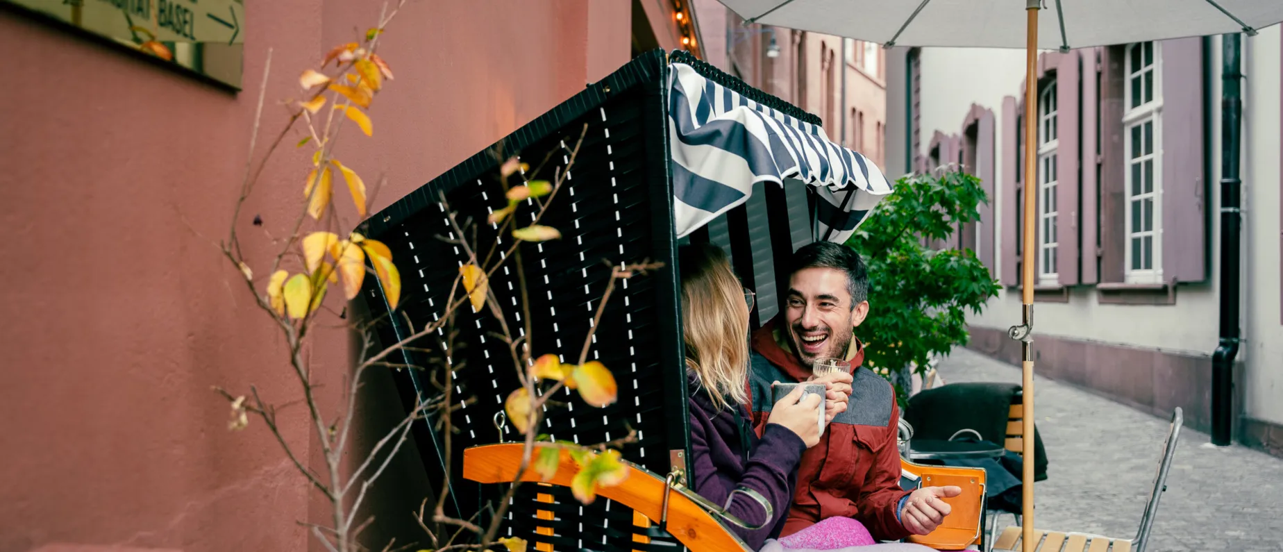 Ist ja auch super gemütlich, super bequem und super windgeschützt. Denn manchmal zieht der Wind ziemlich fies vom Petersplatz durch das enge Totengässlein zum Marktplatz herunter. «Deshalb haben wir nach einer Sitzmöglichkeit gesucht, die es den Gästen ermöglicht, draussen zu sitzen, um das Marktplatztreiben und die gemütliche Stimmung in der Schneidergasse weiterhin zu beobachten», berichten uns Tim und Tobi.