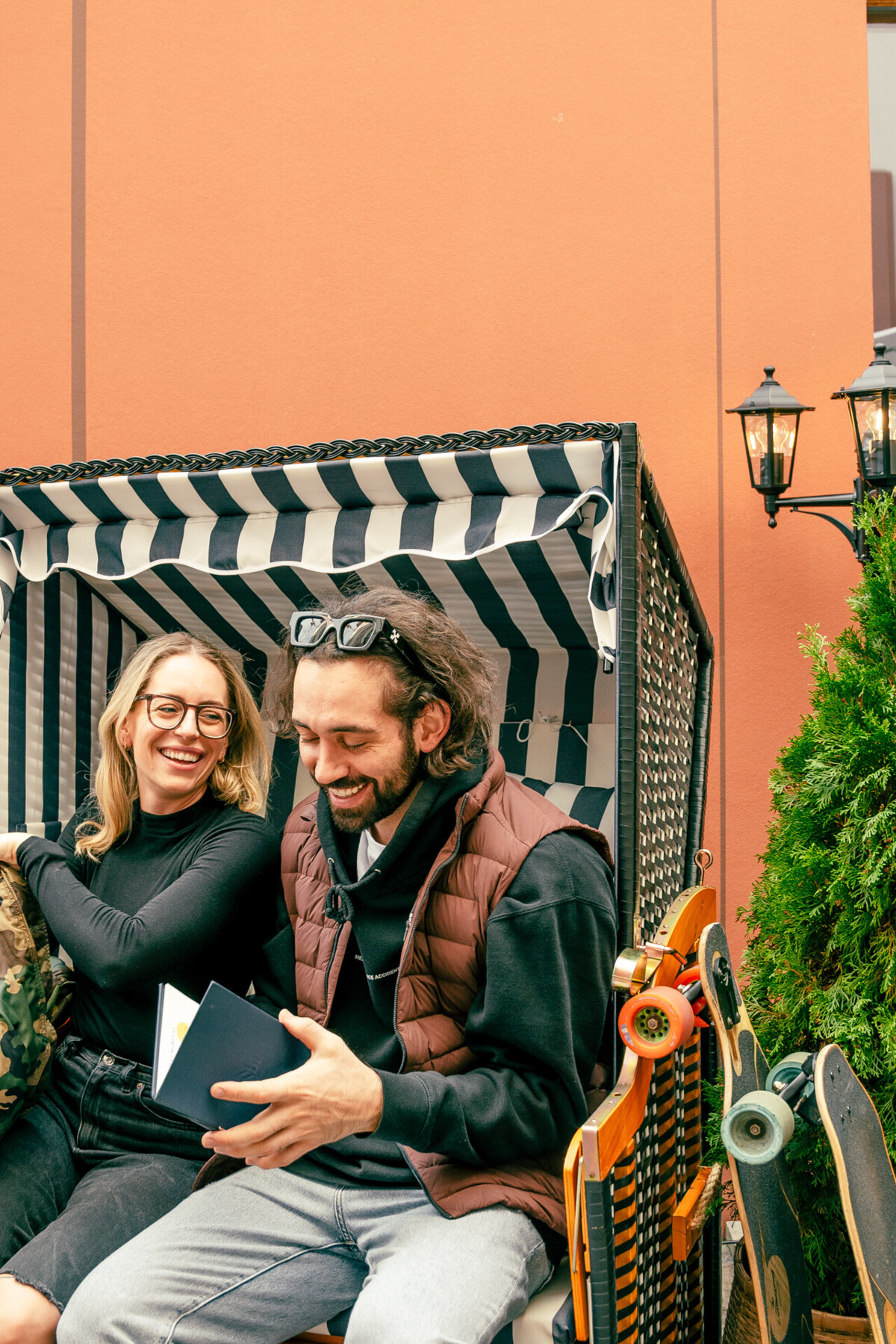 «Die Strandkörbe sollen ein kleiner Moment nordischen Urlaubsgefühls vermitteln. Passend zu unseren Bunt-Belegten Broten, die für uns ihren Ursprung in Kopenhagen haben.» (Kuni & Gunde-Gastgeber Tim und Tobi)