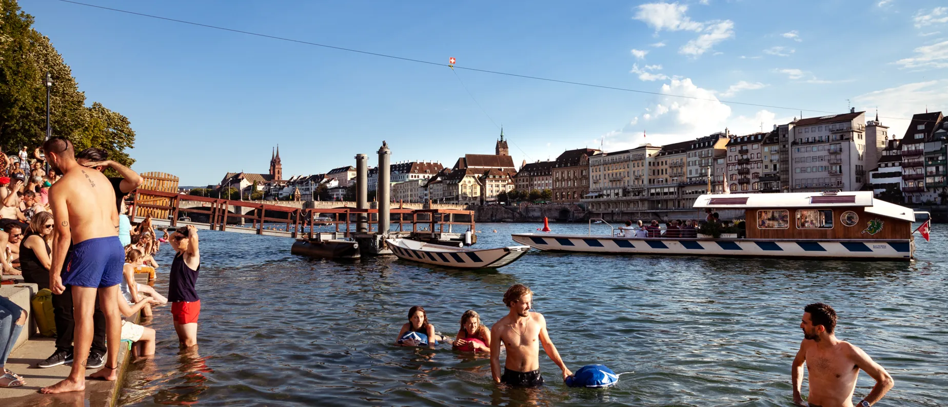 In Basel gehört ein Sprung in den Fluss zum Alltag. Der Rhein ist Vergnügungsort, Erholungszone und Lebensqualität. Dass das Schwimmen durch die Stadt ein Privileg ist, zeigt mir mein Aufenthalt in Prag, wo eine Fluss-Badekultur weitgehend fehlt. Ein Besuch der Ausstellung «Swim City» untermauert meine Erfahrung: Nur auf Grund bewusster politischer und gestalterischer Interventionen, können in Schweizer Städten die Flüsse zum Baden genutzt werden. So hat zum Beispiel das schweizweite Phosphatverbot in Reinigungsmitteln die Wasserqualität signifikant verbessert. Dank dem Bau von Treppen können wir in unseren Flüssen problemlos ein- und aussteigen.