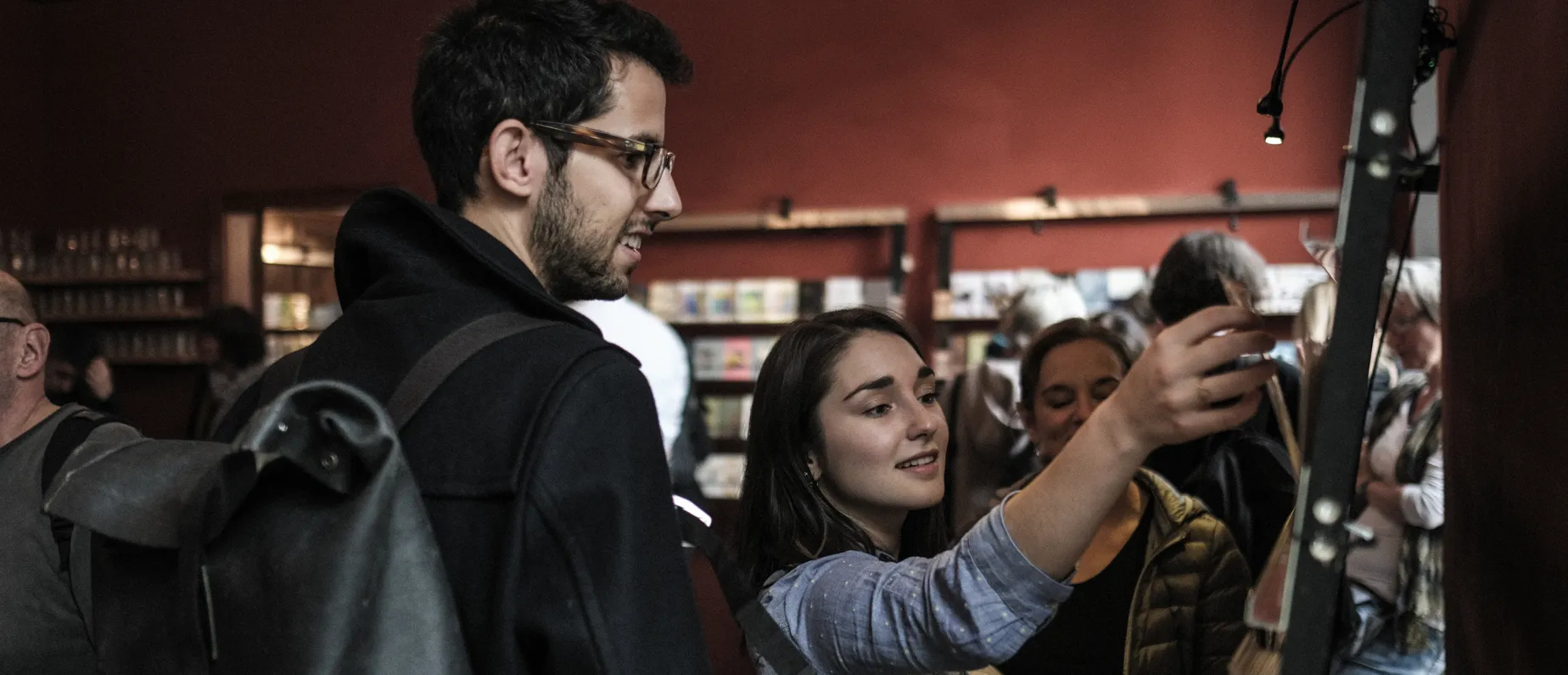 Rund 100 Ausstellende – und zwar vom 7-jährigen Kind bis zum 84-jährigen Grosi – stellen in der Kombüse ihre handgemachten Karten aus. Unter ihnen sind Studenten, Private aber auch viele Künstler aus der Region und von weiter her, sogar aus Frankreich und Deutschland. Gezeigt werden Fotografien, Druckgraphiken, Collagen oder auch handgezeichnete kleine Kunstwerke – alles auf A6. Die Preise bewegen sich in der Regel zwischen 5 und 15 Franken. Und weil eines der Ziele des Festivals ist, Leute wie mich wieder vermehrt zum Postkarten-Schreiben zu bewegen, kann ich gleich vor Ort meine Karten texten, frankieren und verschicken. Was für eine grossartige Idee!