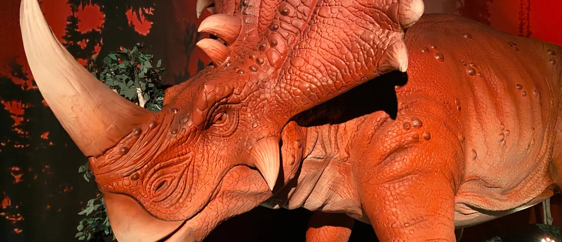 Nach rund 30 Dinos mit teils mehr, teils weniger glaubhaftem Auftritt erwarten uns im letzten Raum noch etliche VR-Brillen, durch die wir virtuell in die Welt der Dinos eintauchen können. Teilweise harmlos (da fliege ich mit Flugsauriern über das Land oder spaziere durch einen Wald, in dem Dinos herumstehen und Pflanzen futtern), teilweise auch etwas too much – ich gucke zum Beispiel unverhofft tief in den Mund eines brüllenden, sabbernden Fleischfressers; danke, adieu. Grundsätzlich erinnert mich die Elektronik der sich bewegenden Dinos an den Europapark. Dennoch ist es eindrücklich, die Grösse der Dinos zu erleben. Die Kinder sind begeistert und wir unverhofft die besten Eltern der Welt (Dinos statt Spaziergang; logisch). Da sich der Winter gerade mühselig in die Länge zieht, meine Fazit: Mit Kindern ist die Ausstellung durchaus einen Besuch Wert. Kinderfrei kannst du auch entspannt auf dem Sofa sitzen bleiben und dir mal wieder Jurassic Park reinziehen.