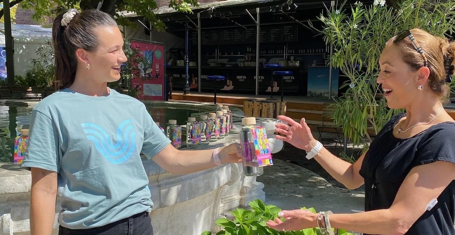 Ohne Wasserflasche aus dem Haus? Derzeit undenkbar! Falls du die Flasche dennoch vergessen haben solltest; wir schenken dir eine! An vier Tagen im August bekommst du vom Stadtraum Festival Flâneur an diversen Orten in der Innenstadt eine bunt bedruckte, mit frischem Brunnenwasser gefüllte Glasflasche in die Hand gedrückt. Dank dem auslaufsicheren Bambus-Verschluss kannst du die Flasche sorgenfrei in deine Tasche zu Laptop und Büchern stecken und mit ins Büro, zur Schule oder an die Uni nehmen.