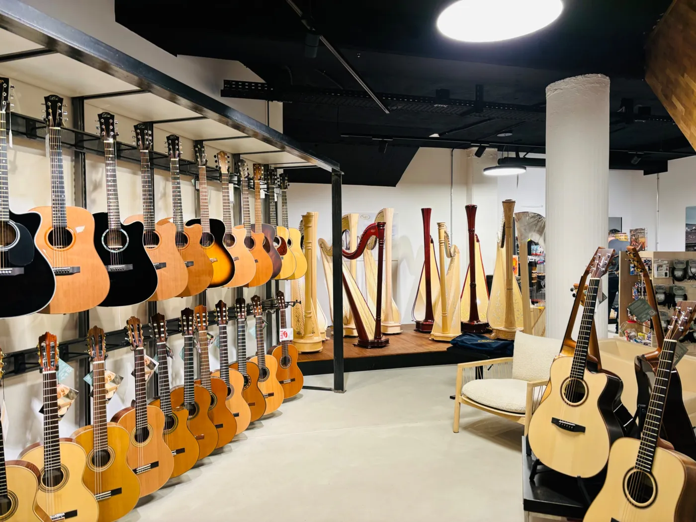 Der Laden erstreckt sich über zwei Ebenen, ist grosszügig, modern und macht richtig Lust, viel Zeit darin zu verbringen, zu stöbern, zu schauen und vor allem auch die verschiedenen Instrumente zu testen. Denn es gibt gleich zwei Testräume, in denen du dich super gut zurückziehen kannst. Nimm also genug Zeit mit, um in die Musikwelt einzutauchen, dich vom Fachpersonal beraten zu lassen, um dich dann für das genau richtige und passende Instrument zu entscheiden.