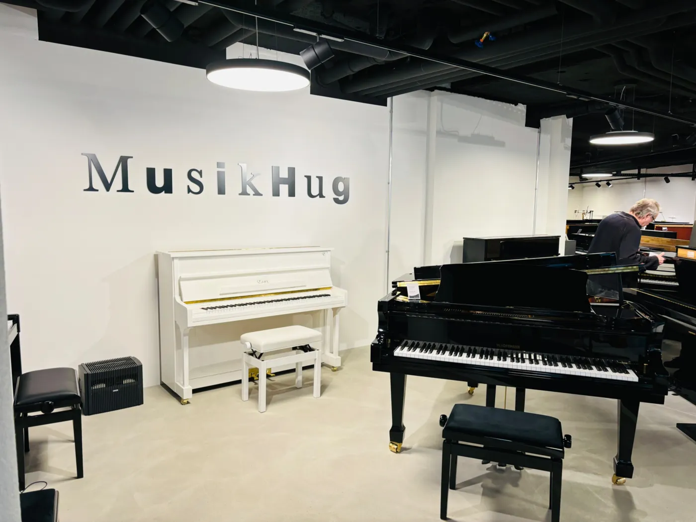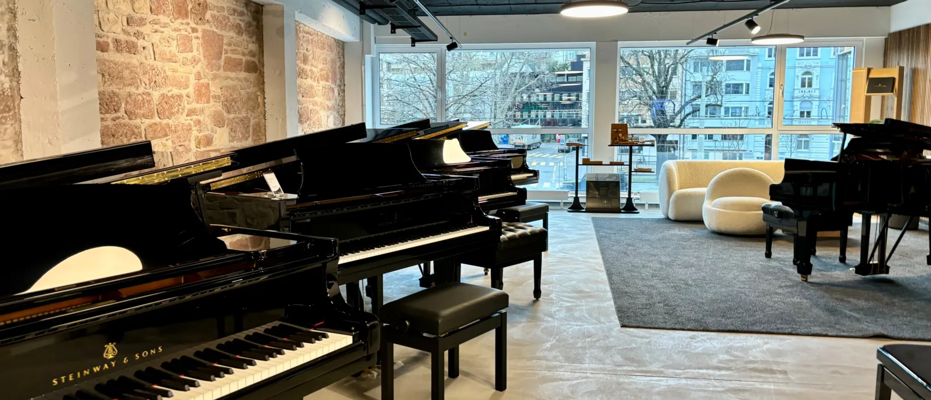 Im ersten Stock triffst du auf eine grosse Auswahl an Klavieren, Pianos und Flügeln.