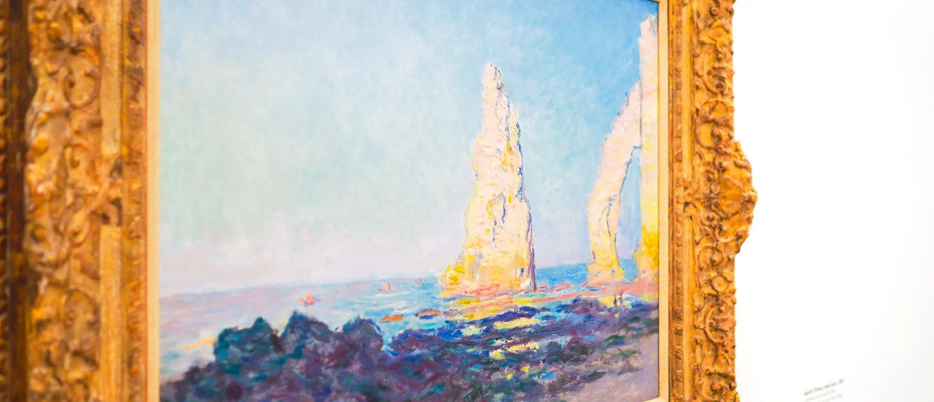 Wir beginnen die Ausstellung andersherum und starten im Untergeschoss – ein Geheimtipp von mir, um einerseits dem dichten Besucherfluss zu entkommen, andererseits aber auch um eine gänzlich andere Leseart der impressionistischen Bildwelt zu ermöglichen. Dort wurde extra zur Sonderausstellung ein etwas 30-minütiger Film mit dem Titel «Under the Influence of Claude, Vincent, Paul... and the others» oder «Der Einfluss der impressionistischen Malerei auf das junge französische Kino» von Matthias Brunner erstellt. Der Film besteht aus Fragmenten von verschiedenen Filmen der 12 berühmtesten Regisseure, deren Arbeit in engem Austausch mit der impressionistischen Malerei stand. Besonders deutlich wird dies in den Filmen Jean-Luc Godards, in denen es an zahlreichen Zitaten aus der europäischen Malerei und der Kunstgeschichte wimmelt. Kurzum, nach diesem filmischen Streifzug wird eines besonders deutlich: die impressionistischen Maler und unter ihnen besonders Monet haben ein filmischen Bilddenken vorweggenommen, respektive nachhaltig beeinflusst. Sieht man sich nun die Ausstellung an, und zwar von hinten aufgerollt, hat man dank der filmischen Bilder komplett neuartige Sichtweisen auf Monets Werke.