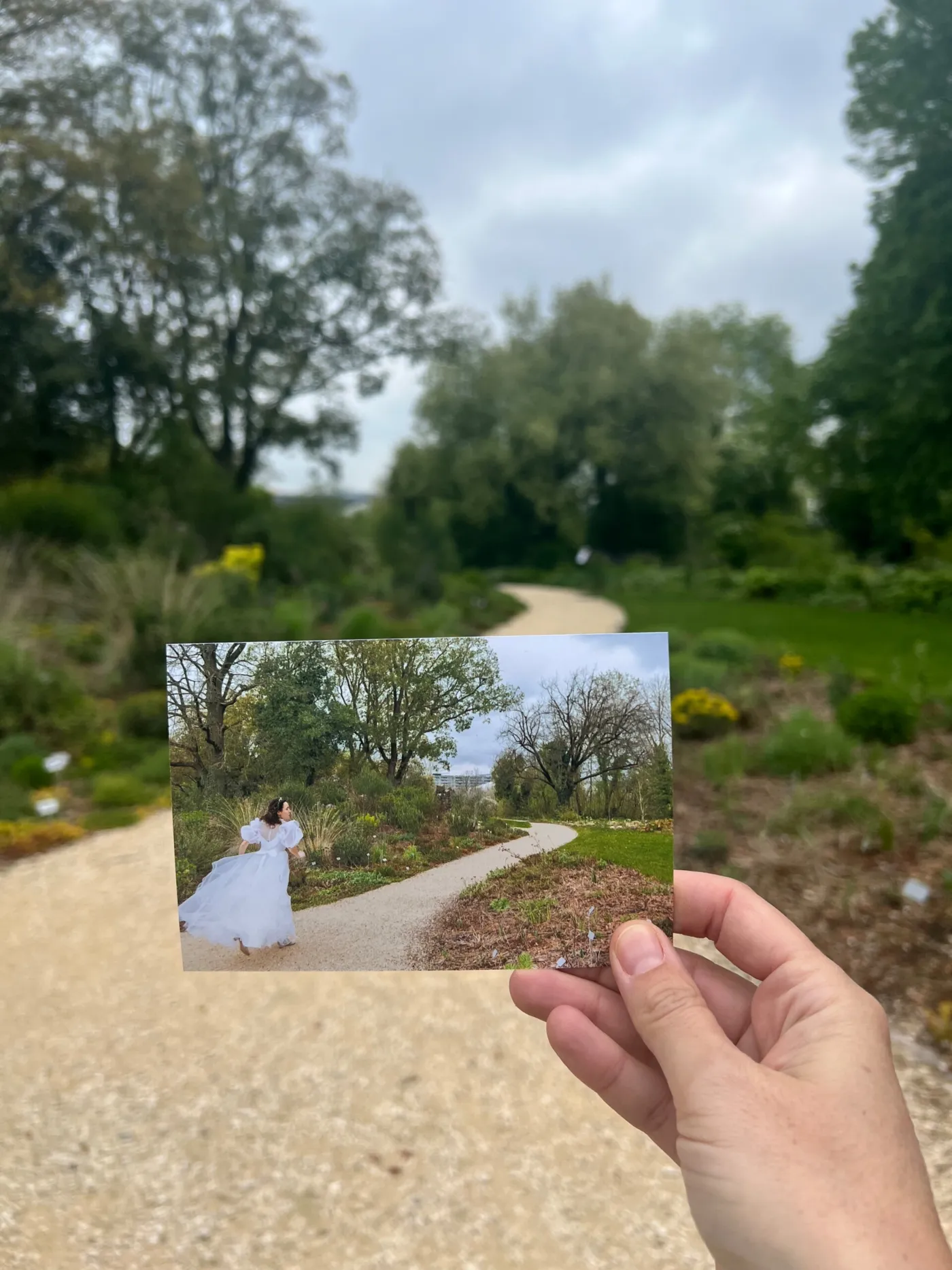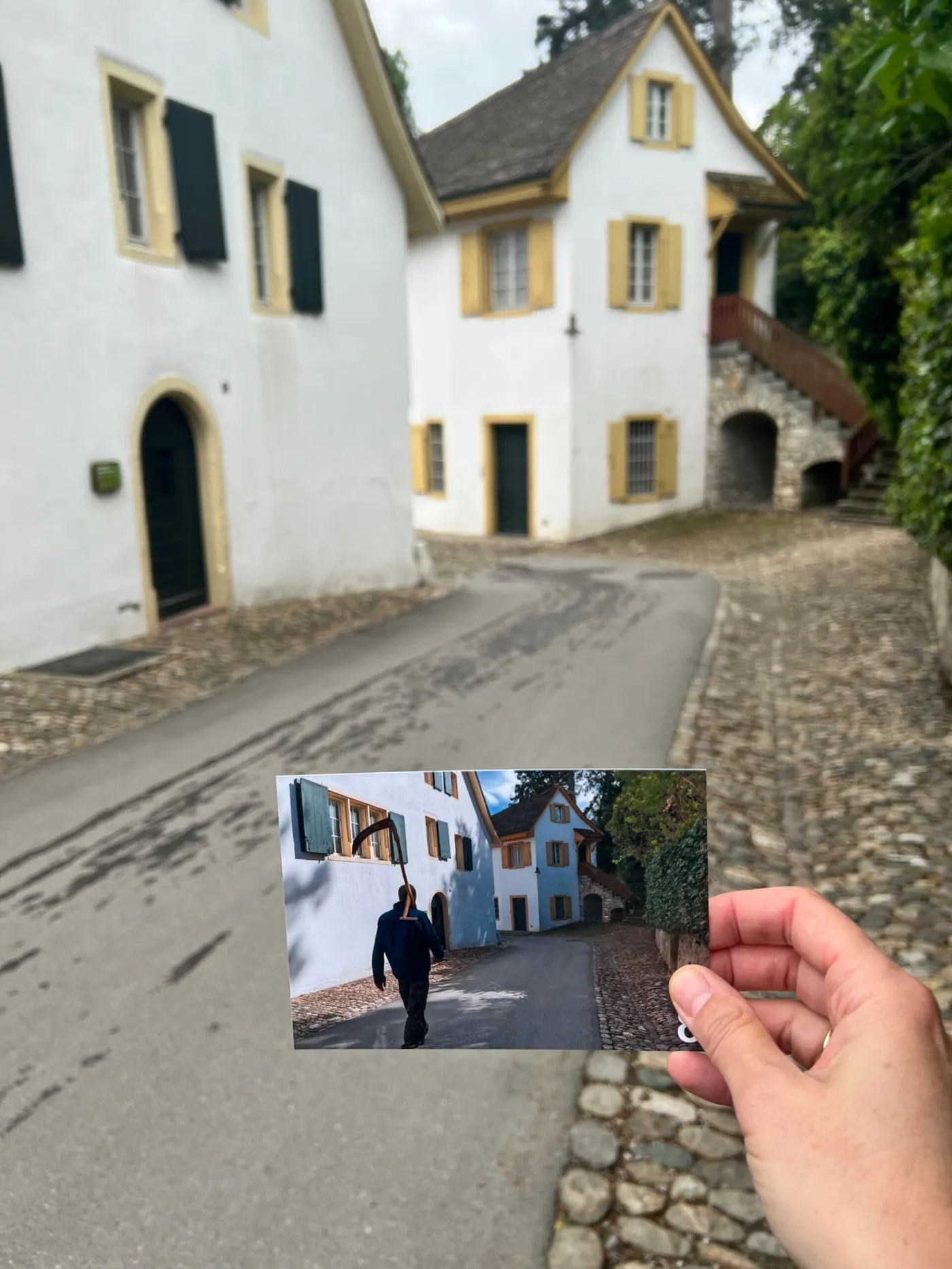 Immer wieder darf ich ein Foto aus dem Täschli zupfen. Darauf zu sehen ist zum Beispiel eine davonrennende Braut, der Geist einer ehemaligen Patientin, die in der Villa Merian zur Kur war oder ein Gärtner mit Sense. Ich erfahre, dass Queen Elisabeth anlässlich ihres Besuches an der Grün 80 in der Villa Merian gegessen hat – und dafür eigens aus dem Kunstmuseum Bilder von Arnold Böcklin im Speisesaal aufgehängt wurden. «Die Toteninsel» zum Spargelmenü. Ich muss schmunzeln. An mehreren Stellen während des Rundgangs.