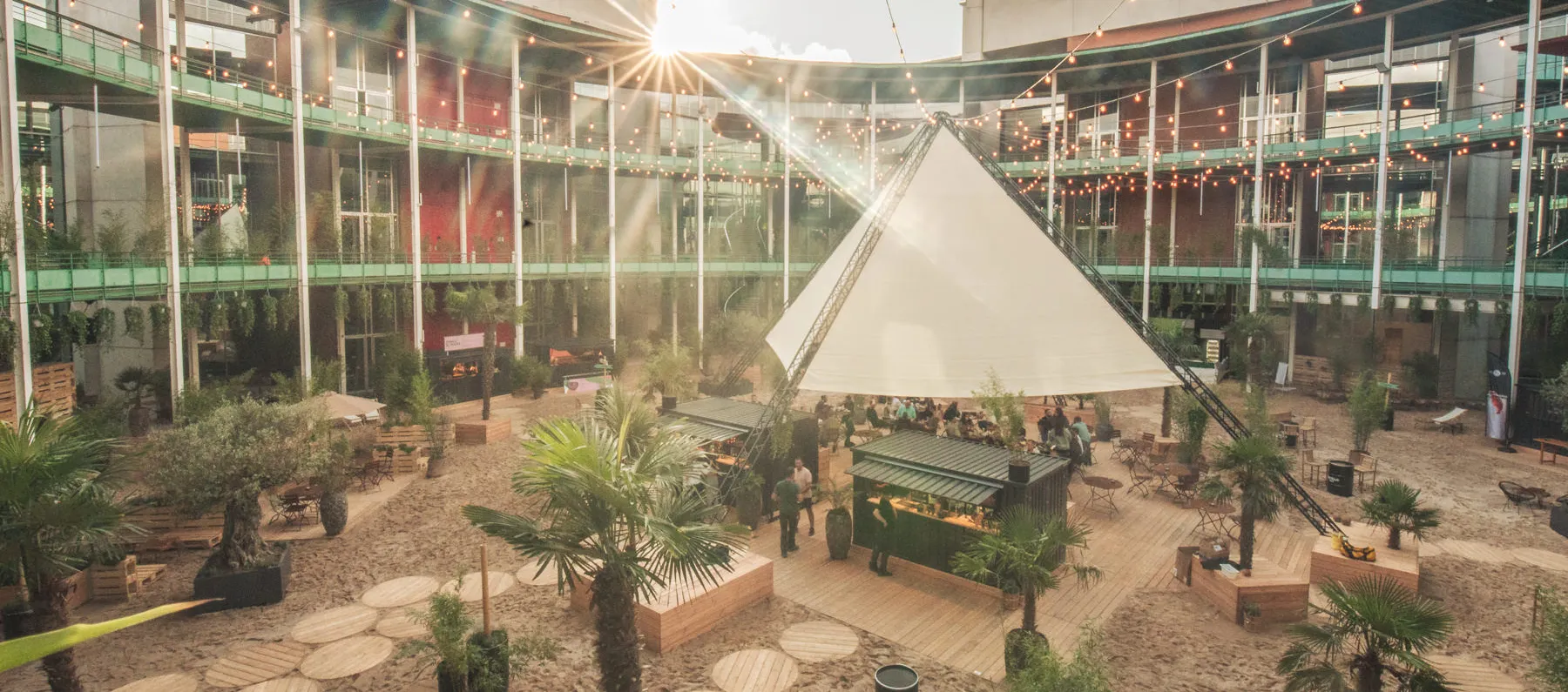 Ein urbaner Rückzugsort für Geniesserinnen und Geniesser im Rundhof der Messe Basel.