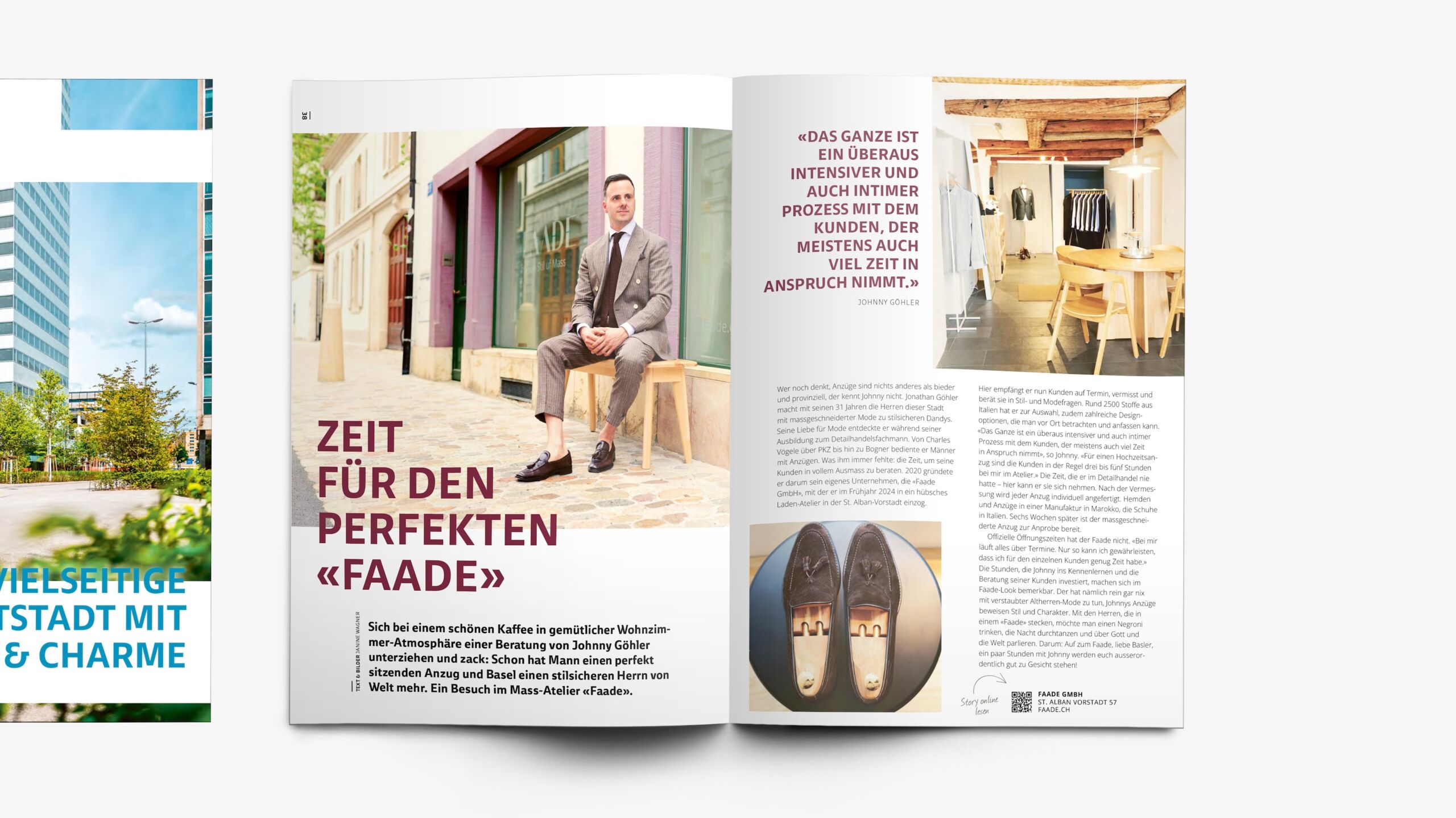 Sich bei einem schönen Kaffee in gemütlicher Wohnzimmer-Atmosphäre einer Beratung von Johnny Göhler unterziehen und zack: Schon hat Mann einen perfekt sitzenden Anzug und Basel einen stilsicheren Herrn von Welt mehr. Ein Besuch im Mass-Atelier «Faade».