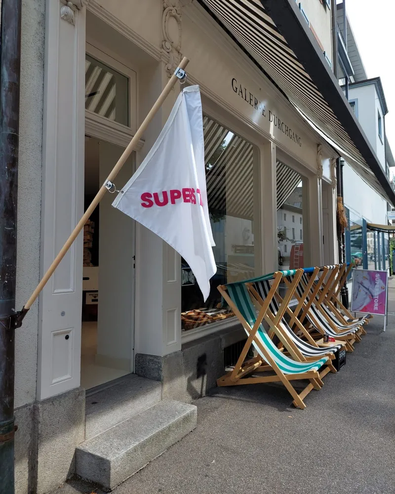 Noch bis am 17. August betreibt die Galerie Durchgang den SUPERSTORE. Die Ausstellung ist da zum Durchspazieren und gleichzeitig ein Shoppingangebot mit Kunst zum Tragen, Bestaunen und Benützen.