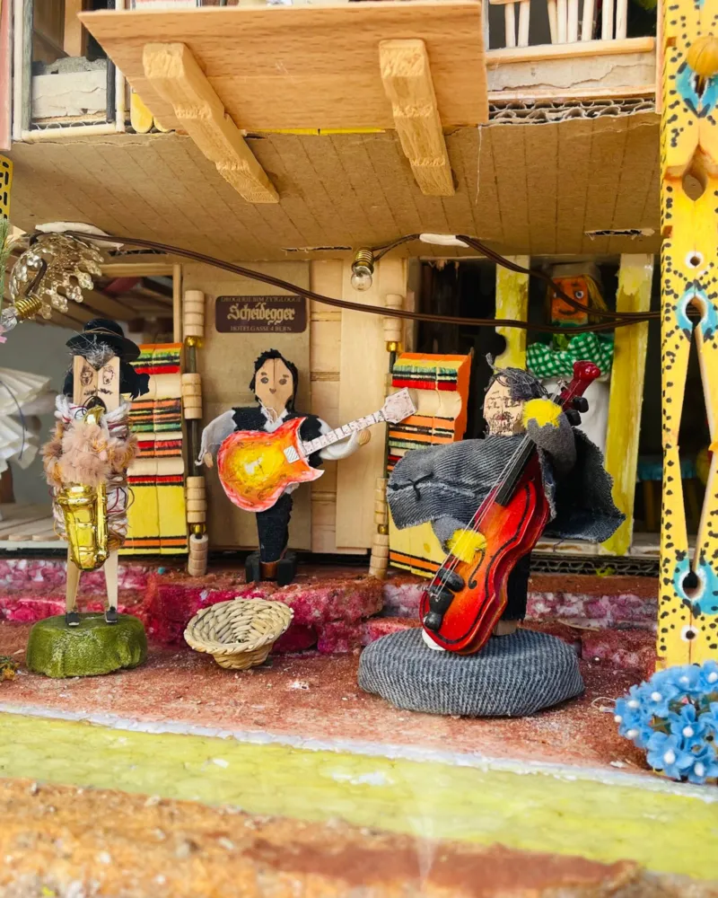 Etwas versteckt, am Unteren Heuberg 21, liegt der Kulturraum Parzelle403. In der neuen Ausstellung von Giancarlo Nicolai tauchst du ein in die fabelhafte Welt der Wäscheklammern. Dieser kleine Alltagsgegenstand wird mit viel Herz zum Leben erweckt.