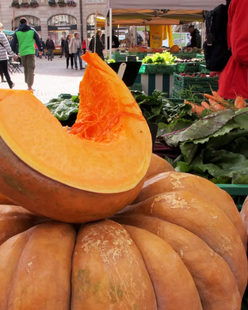 Der Herbst hält Einzug auf dem Basler Stadtmarkt: Eine bunte Auswahl an Kürbissen ziert und vergoldet die kälter werdende Jahreszeit. Aus den beliebten Gewächsen lassen sich schmackhafte Herbst- und Wintergerichte zaubern.