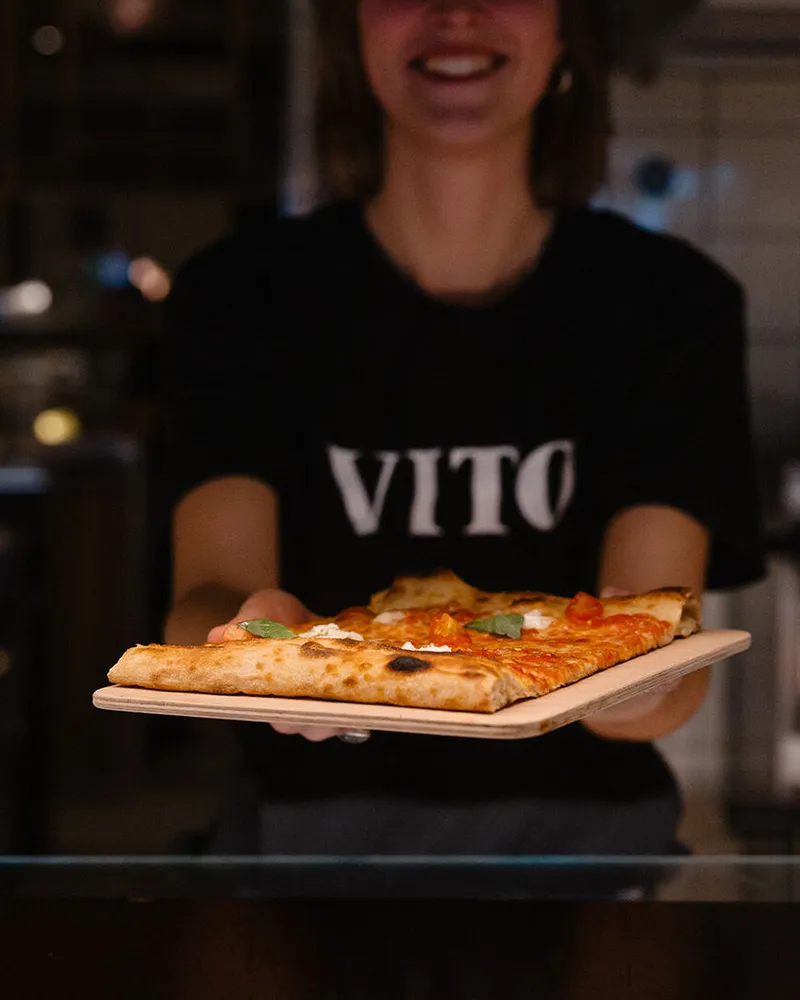 VITO steht in Basel für leckeren Pizzagenuss, der dank Metermass einfach geteilt werden kann. Im Dezember und Januar kannst du die Freude am ausgiebigen Schlemmen noch weiter streuen, indem du mit der «Pizza Sospesa» ein Stück Wärme spendest.