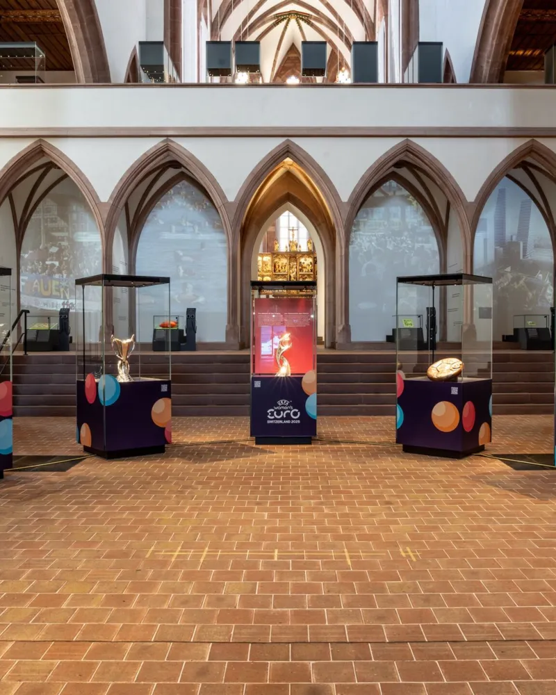 Welches Team am Ende der Women's EURO den Pokal in die Höhe stemmt, wird sich zeigen. Bereits jetzt ist er im Historischen Museum Basel ausgestellt – zusammen mit einer Auswahl prestigeträchtiger Fussballpokale. Schau vorbei – der Eintritt ist frei!