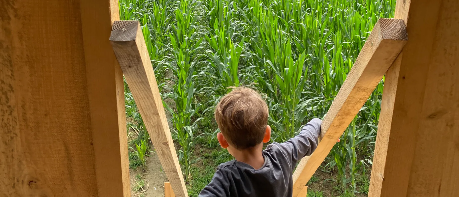 Juhu, es ist wieder offen, das Mais-Labyrinth auf dem Mathis-Hof! Bis Mitte Oktober kannst du nun täglich von 8 bis 20 Uhr durch die Maisstauden irren und dich freuen, wenn du die Seilbahn, das Trampolin oder die Rutschbahn findest. Du könntest sogar eine Wurst bräteln, wenn es denn mal eine halbe Stunde lang nicht schiffen würde – es stehen zahlreiche Grillschalen mit Rost und Grillzangen bereit. Das Holz zum Anfeuern bekommst für fünf Franken im Hofladen.