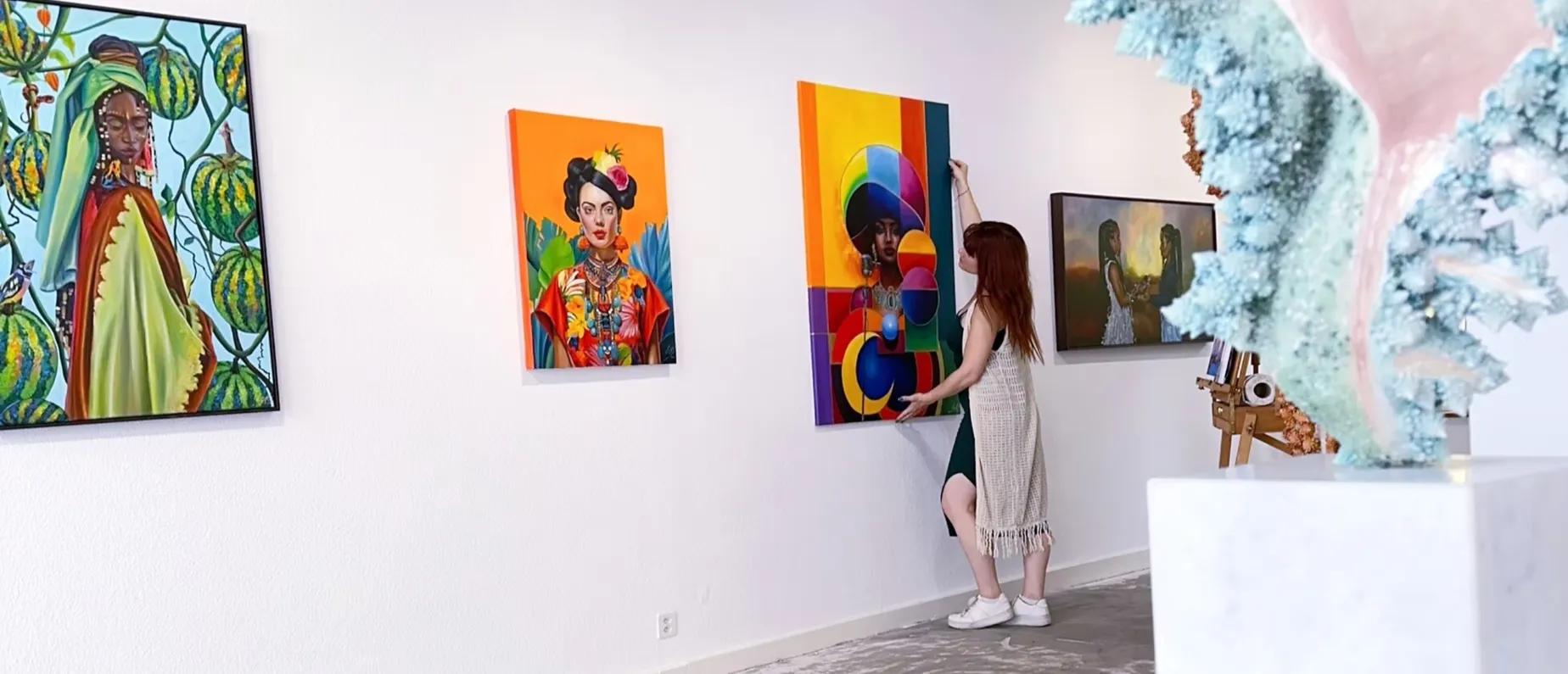 Mit der Ausstellung «Her Stories, Hidden Narratives» rückt das Birsfelder Museum die vielfältigen aber oft unsichtbaren Geschichten von Frauen ins Scheinwerferlicht. Vier Kunstschaffende aus der Schweiz und Spanien – Stephanie Künzli Ycaza, Vanessa Freuler, Alejandro Decinti und Antonio Decinti – stellen auf über 200 Quadratmetern ihre Werke aus. Diese sind in Thema und Form ganz unterschiedlich: Neben Ölmalereien verschiedener Stilrichtungen zeigen auch Installationen und Videoarbeiten weibliche Identitäten. In intensiven Bildwelten werden Emotionen verarbeitet und dargestellt – mal abstrakt und dann wieder ganz realitätsgetreu.