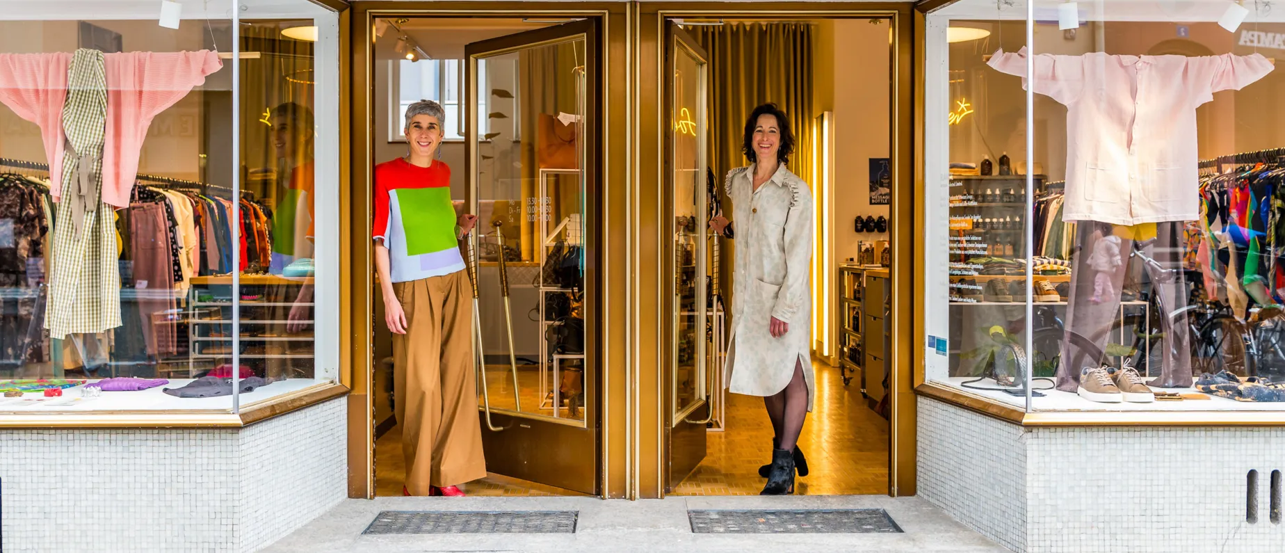 Hier verkaufen sie mit fachkundigem Blick ausgewählte Mode und Accessoires, fast nur Labels aus der Schweiz – rund 60 sind es unterdessen. Ihr Portfolio zeigt: Die Vielfalt an Modedesign, die in der Schweiz passiert, ist riesig. Dies kann für die Kundinnen und Kunden mitunter auch etwas anspruchsvoll sein, denn «von der Stange» gibt es hier nichts. «Dafür ist es bei uns ein sehr persönliches Einkaufen», erzählt Sabine. «Meist fühlt es sich eher an wie ein privates Treffen mit einem guten Gespräch.» Zu jedem Stück in ihrem Laden wissen Anita und Sabine die Geschichte, denn sie kennen die Designerinnen und Designer fast alle persönlich.
