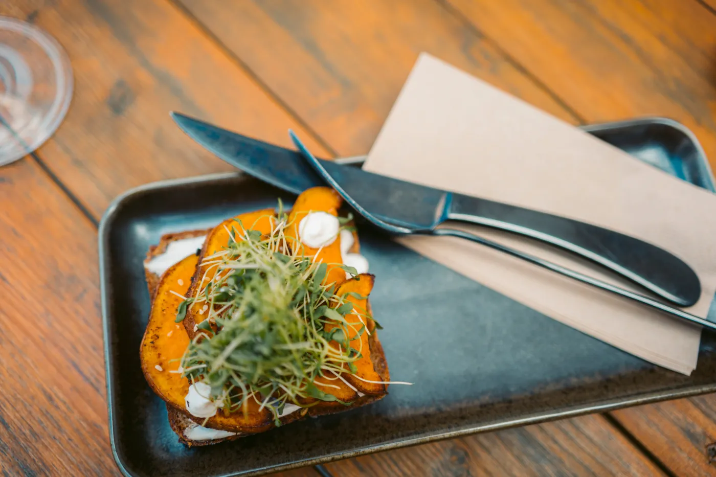 Von Anfang an setzten Tim und Tobi auf ihre besonderen Kreationen belegter Brote. Inspiriert von den in Kopenhagen geborenen Smørrebrød werden die sogenannten Bunten Brote von Kuni & Gunde stets mit frischen, saisonalen und regionalen Zutaten zubereitet. Durch das Feedback der Gäste entstehen dabei immer wieder neue raffinierte Kreationen, die sich weit weg von einem gewöhnlichen belegten Brötchen bewegen. Tobi fügt hinzu: «Wir haben zu jedem belegten Brot eine Geschichte mit Produkten aus der Region.»