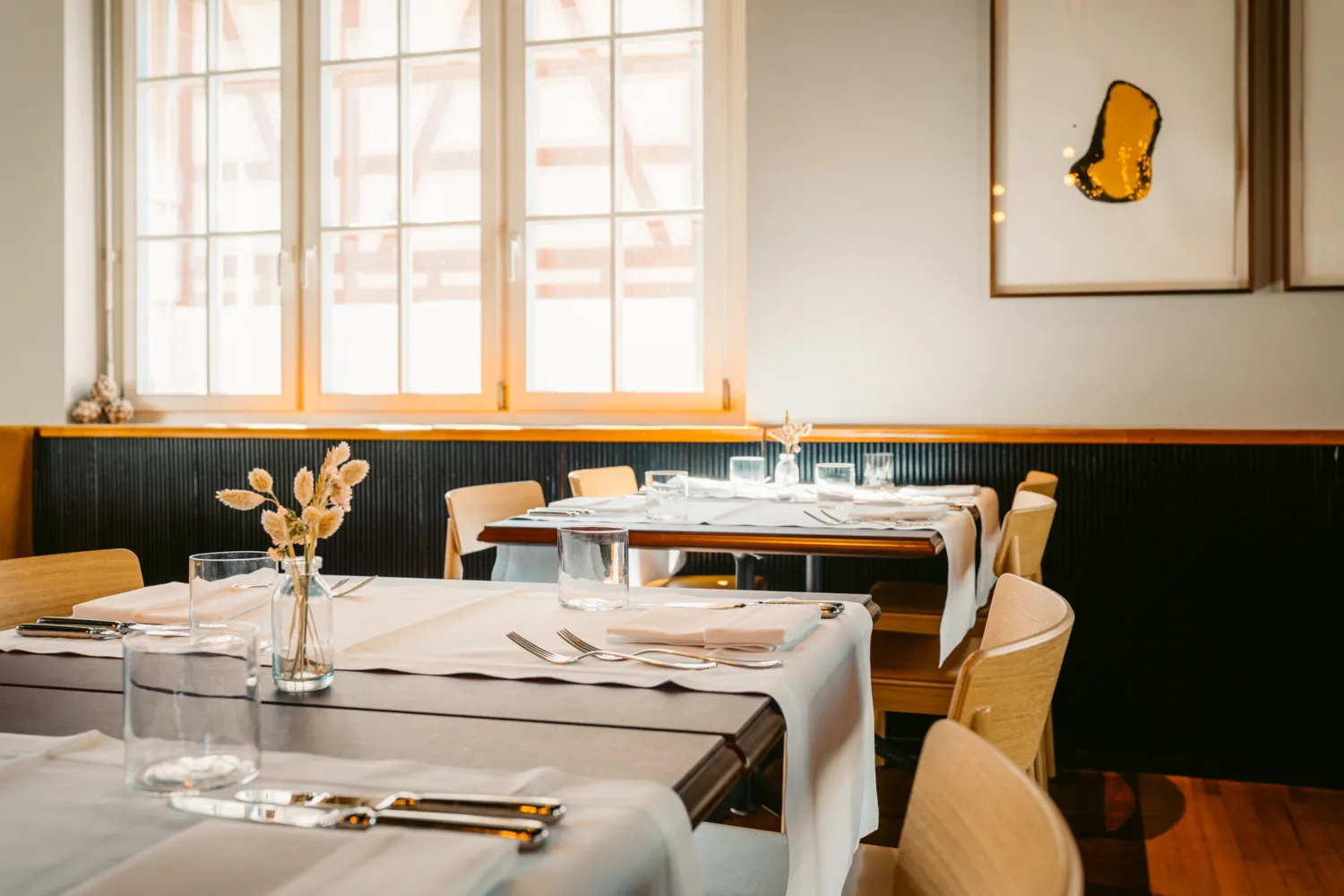 «Wir wollen, dass sich die Menschen bei uns wohlfühlen», erklärt Alexandre Kaden. «Der Landgasthof soll wieder ein Anker werden in Riehen.» Er ist auf gutem Weg. Bereits heute gehen Kunstfreunde, Expats, Senio- ren, Vereine, Familien und Pärchen hier ein und aus, feiern Geburtstage, Hochzeiten und Taufen, halten Versammlungen ab und Lesungen, treffen sich zum Kaffeekränzchen oder zum romantischen Tête-à-Tête. Es scheint, die herzliche Atmosphäre, die frische, regionale Küche und die einladenden Räumlichkeiten zeigen Wirkung. Der Landgasthof ist wieder Heimat für die Bevölkerung von Riehen und für die ganze Welt. Der Duft frischgestrichener Wände verblasst langsam unter dem frühlingshaften Duft von Bärlauch und Spargel. Die Linden auf der Terrasse bewegen sich derweil sanft im Wind
