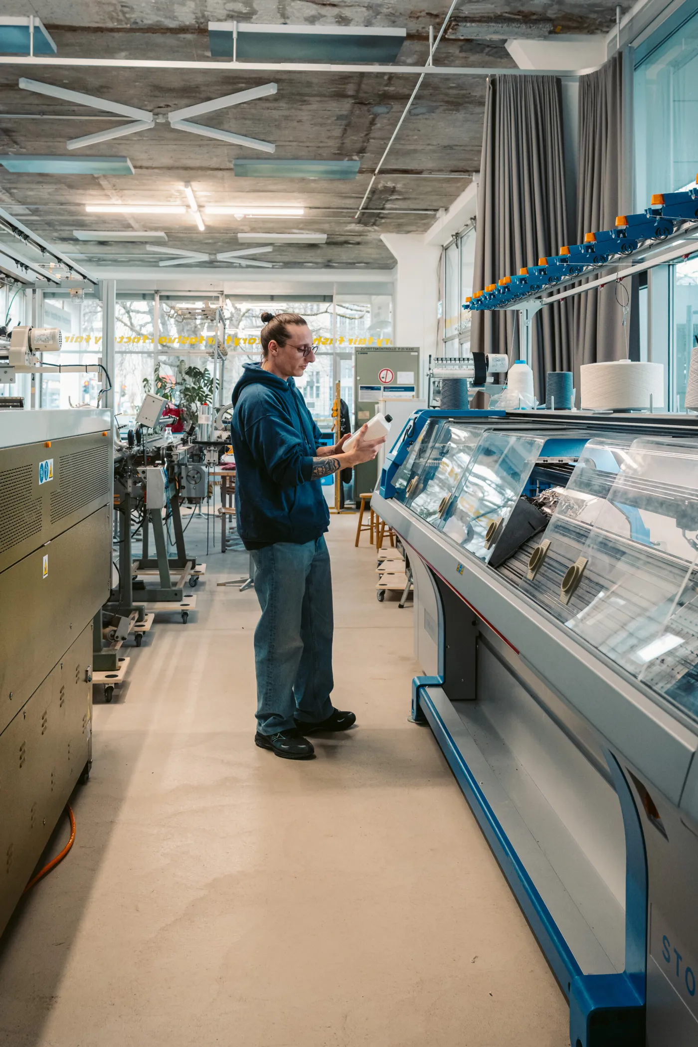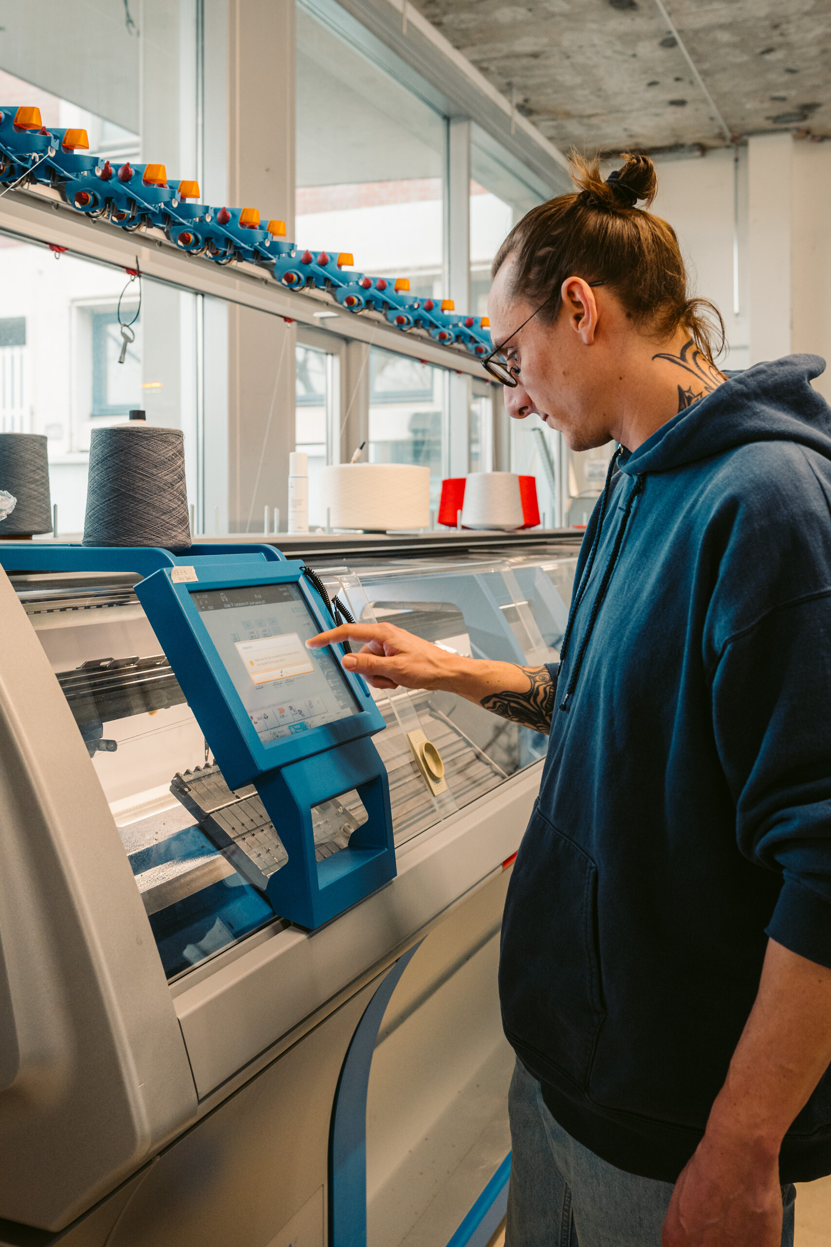 Nach einem Crowdfunding konnte sich die Fair Fashion Factory eine industrielle Strickmaschine anschaffen. Sie steht nun neben einer Umspuhlmaschine und mehreren kleineren Schweizer Dubied-Maschinen in der alten Ciba-Porte. Vier Textil-Profis lernen aktuell die Funktionen der neuen Maschine kennen und fuchsen sich in die Strick-Software ein. Bald werden hier Schals, Mützen und Pullis produziert. Das Interesse am Basler Jersey war bereits im Vorfeld gross, bei kleinen wie auch grösseren Unternehmen. «Zukünftig wird zum Beispiel der FCB seine Schals bei uns stricken», freut sich Pascal.