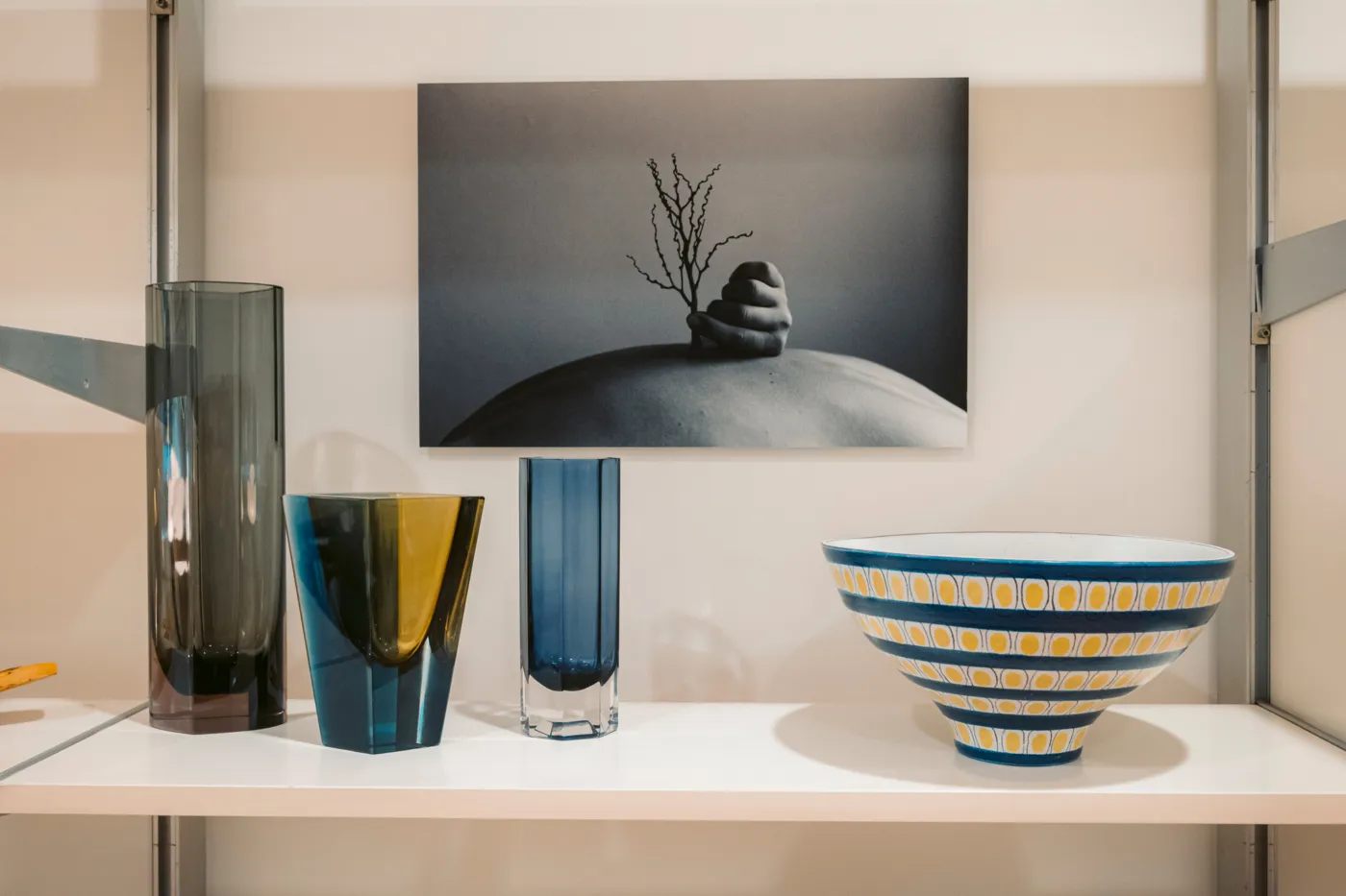 Nora Gysin ist bereits seit vielen Jahren ein Fan des Midcentury-Stils. Sie mag die sanften Kurven, die klaren Linien, die geometrischen Formen. 2017 ging sie mit ihrem Online-Shop sella-studio.com online. Bis heute verkauft sie dort Stühle, Tische, Lampen, Keramik- und Glaswaren, die sie in ganz Europa in Brockis, auf Flohmis, bei Antiquitätenhändlern und Auktionshäusern zusammensucht. Als sie 2025 vom freiwerdenden Ladenlokal am Spalenberg 18 erfuhr, war für Nora klar; jetzt oder nie. «Beim Vorbeispazieren habe ich in der Vergangenheit oft aus Spass gesagt: Das wird einmal mein Laden! Dass ich nun tatsächlich hier sitze, ist ziemlich surreal und freut mich wahnsinnig!» Auch die Menschen am Spalenberg sind vom hübschen Neuzugang angetan und schwelgen vor dem Schaufenster lächelnd in Erinnerungen. Viele Stücke kennen sie so oder ähnlich aus Kindheitstagen oder vom Inventar der Eltern und Grosseltern.