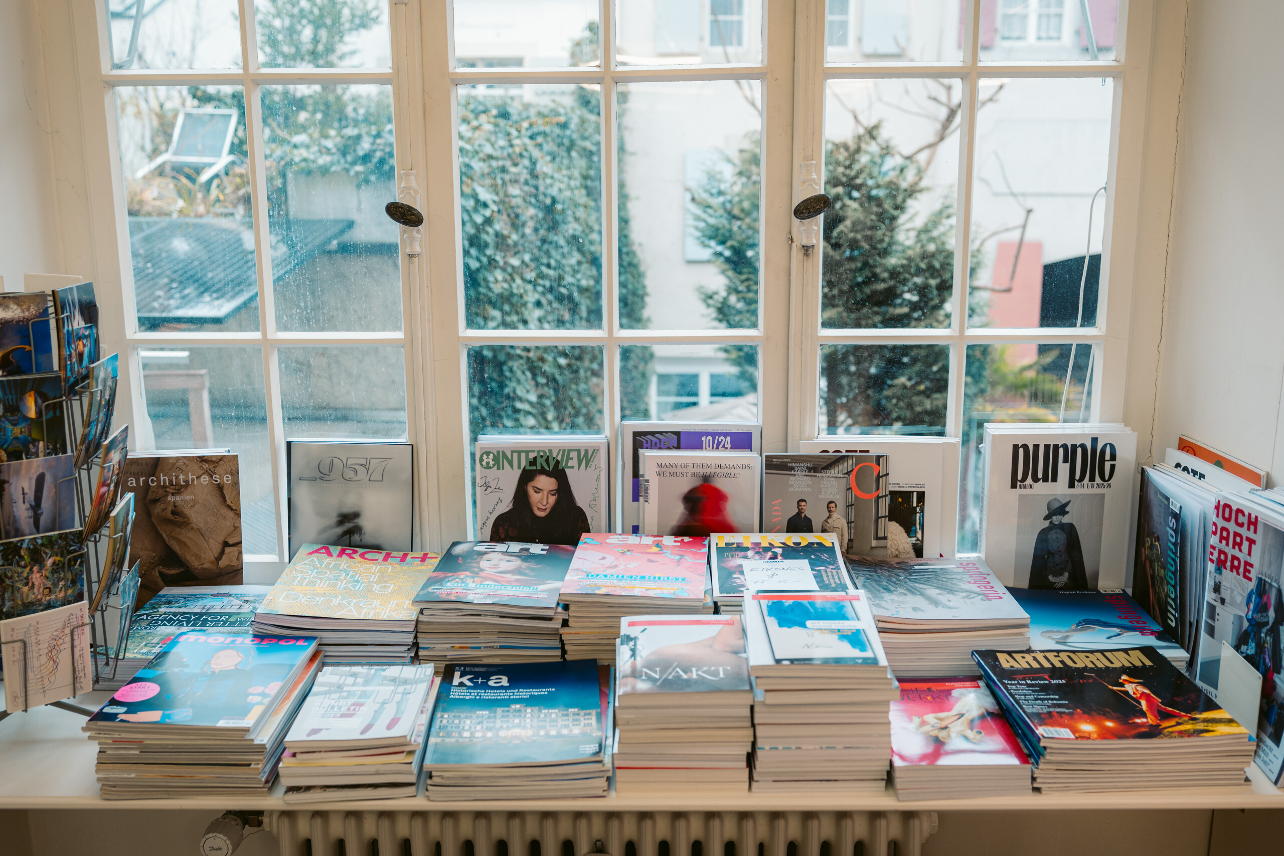 Bis heute präsentiert das Galeristen-Paar jedes Jahr fünf bis sechs Ausstellungen, Künstlerinnen und Künstler wie Roman Signer, Zilla Leutenegger, Rosemarie Trockel oder Pipilotti Rist gehen hier ein und aus. Die Buchhandlung wird laufend mit neuen Publikationen zu Kunst und Architektur, zu Fotografie und Design aber auch zu Mode, Theater und Film ergänzt und widerspiegelt Gillis und Diegos breites Interesse an der Welt. Sogar Kochbücher findest du hier, Garten-Inspirationen, Musiker-Biografien und natürlich den Atlas zur Geschichte Graubündens. Die Galerie Stampa ist in Basel eine Institution. «Wir wollen in Bewegung bleiben und dazulernen, Austausch haben, Kommunikation», so Diego. «Bis heute lesen wir von Hirnforschung über Politik alles, um am Puls der Zeit zu bleiben und zu verstehen, was auf dieser Welt los ist.» Ihr Leben, in dem sich alles um die Kunst dreht, empfindet Gilli als Privileg. «Die Kunst ist eine Schule des Sehens und Empfindens. Sie öffnet den Geist», ist sie sicher. Diego und Gilli Stampa zeigen eindrücklich: Wer offen ist und interessiert, wer sich mit der Welt auseinandersetzt, ist und bleibt selbst interessant.