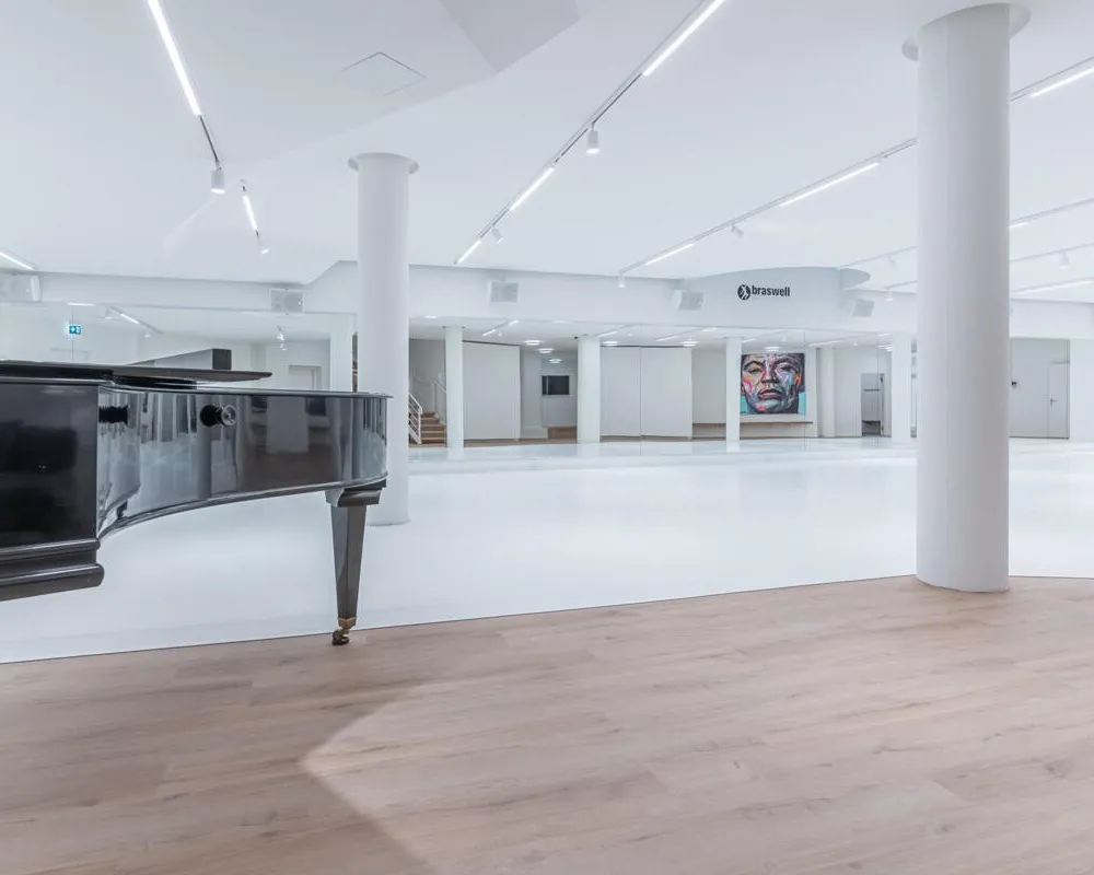 Und so treffen wir Armando am Eingang des Centers in der Aeschenvorstadt 52, wo die Tanzschule vor einem Jahr ihre neuen Räumlichkeiten bezogen hat. Kaum vorstellbar, dass hier vorher ein dunkles, dem Neonlicht verschriebenes Lasertec die Räume bespielt hat. Jetzt stolpert man direkt in ein Café, das gleichzeitig auch Empfang und Warteraum ist und vom Innendesign eher an ein Wellnessretreat erinnert. Alles ist im reinlichsten Weiss gehalten, dezent rosa Magnolienblüten zieren die Tische. Einzig die Leinwand gibt einen Hinweis darauf, dass hier getanzt wird – einen Stock tiefer. An den Tischen verteilt sitzen ein paar Eltern, trinken Kaffee und warten auf ihre Kinder. «Wir wollten den Empfangsbereich bewusst offen gestalten, als Cafè und Bistro kreieren, wo etwas passieren darf und wo man auch eine Kleinigkeit essen kann», betont Armando auf seine warmherzige Art. Irgendwie drängt sich der Gedanke auf, dass das glänzende und reinliche Weiss auch als Gegensatz zum eintönigen und schmutzigen Grau seiner Vergangenheit in Brooklyn stehen könnte.