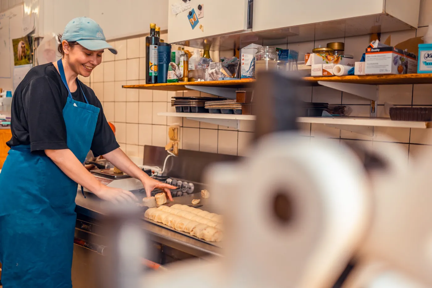 Die kleine Backstube an der Klybeckstrasse trägt ihren Teil dazu bei, dass hier mit viel Liebe zubereitete, kulinarische Kunstwerke entstehen. Die Geräte und der Ofen haben schon einige Jahrzehnte auf dem Buckel und stehen für hohe Qualität. Wir befinden uns nämlich im Hinterhaus des kleinen Gastro-Juwels Gatto Nero. Wo heute mediterrane Gerichte serviert werden, wurden früher Backwaren verkauft, welche in der Backstube dahinter produziert wurden. Die kleinen Räumlichkeiten machen einen Grossbetrieb unmöglich, wirken hingegen inspirierend für besondere Rezepte, die den Unterschied machen. Ganz nach dem Motto: Hier sind Menschen am Werk, keine Maschinen.