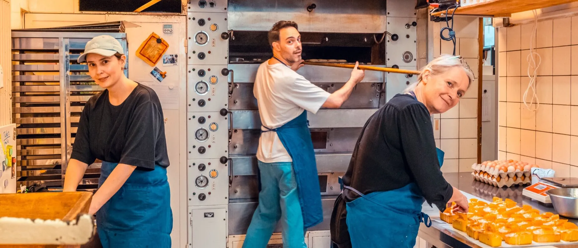So elegant der Name der kleinen Manufaktur, so charmant der Mensch dahinter. Claire Guerrier kommt aus dem elsässischen Strasbourg und hat in Basel bereits mit dem kleinen Gastro-Lokal La Fourchette an der Klybeckstrasse ihr feines Gespür für kulinarische Geheimtipps bewiesen. Sieben Jahre lang hat sie das Lokal geführt, ehe sie es in neue Hände abgegeben hat. Vor rund fünf Jahren hat sie mit finebouche.toujours ein neues Projekt in Angriff genommen. «Der Gedanke ist immer gleich: Ich möchte den Menschen etwas schenken. Und Backen ist mir schon immer leichtgefallen», erzählt Claire in charmanter Bescheidenheit. Sie ist nämlich weder ausgebildete Gastronomin noch gelernte Bäckerin oder Konditorin, sondern kommt aus dem Kunstbereich. «In mir schlagen zwei Herzen. Eines für die Kunst und eines fürs Backen. Das gilt übrigens auch für mein Team in der Backstube. Amélie hat ein Kunststudium absolviert und Stavros ist nebenbei noch Schauspieler. Ich bin überzeugt – unser künstlerischer Hintergrund beeinflusst die Art, wie wir Rezepte verfeinern und hingebungsvoll arbeiten.»