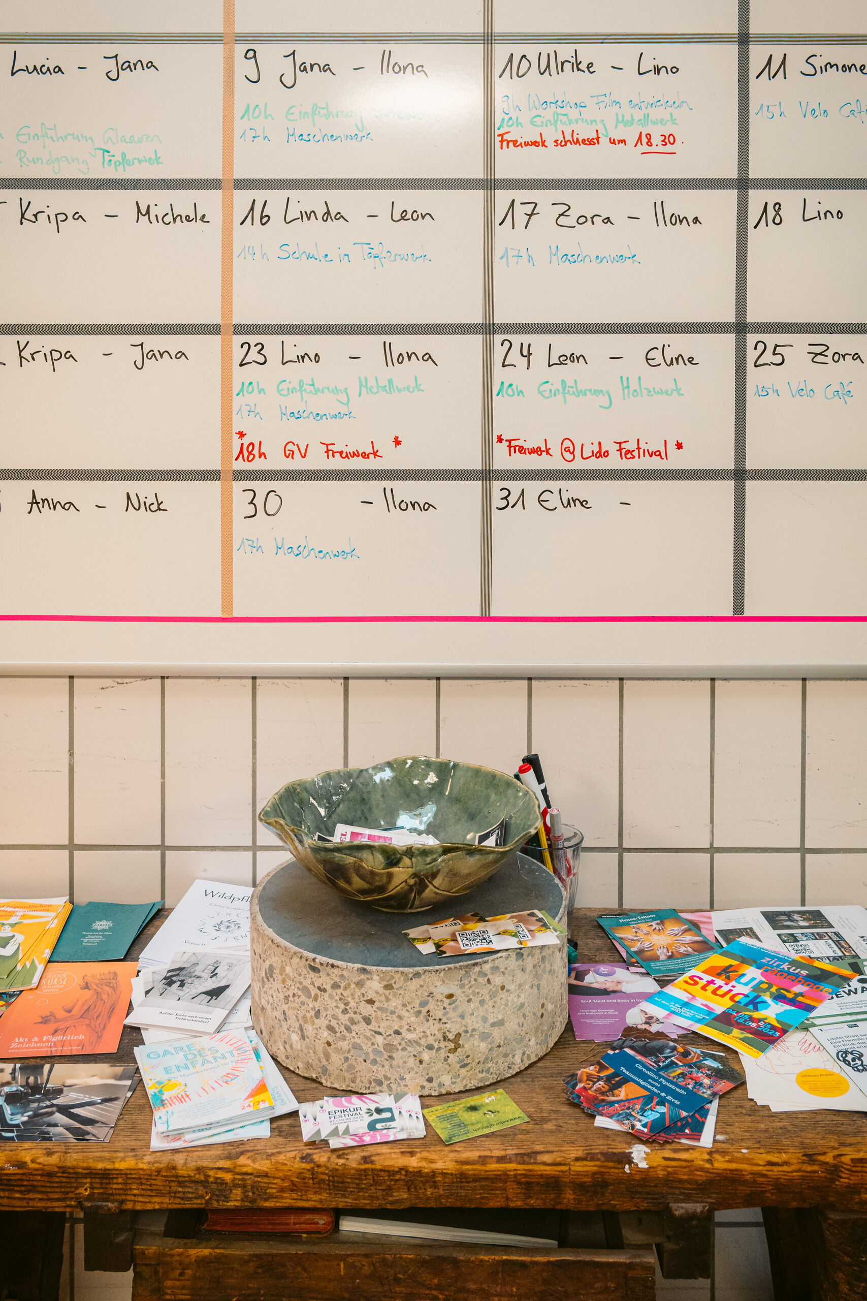 Bis heute investieren die fünf Freunde viel Zeit in das Freiwerk. Ehrenamtlich. Mit dem Umzug ins Elys ist die Belastung gewachsen. «Früher konnten wir die Miete untereinander aufteilen», erzählt Jana Graf, die das Töpferwerk leitet. «Jetzt ist jeden Monat finanzieller Druck da.» «Das Ganze muss sich rechnen», bestätigt Leon Egeli, der sich um das Velowerk und die Finanzen des Vereins kümmert. Die Truppe schmunzelt verhalten. Das tut es aktuell noch nicht. «Wir sind noch auf Stiftungsgelder angewiesen», so Leon. Wachstum und Entwicklung brauchen eben Zeit.
