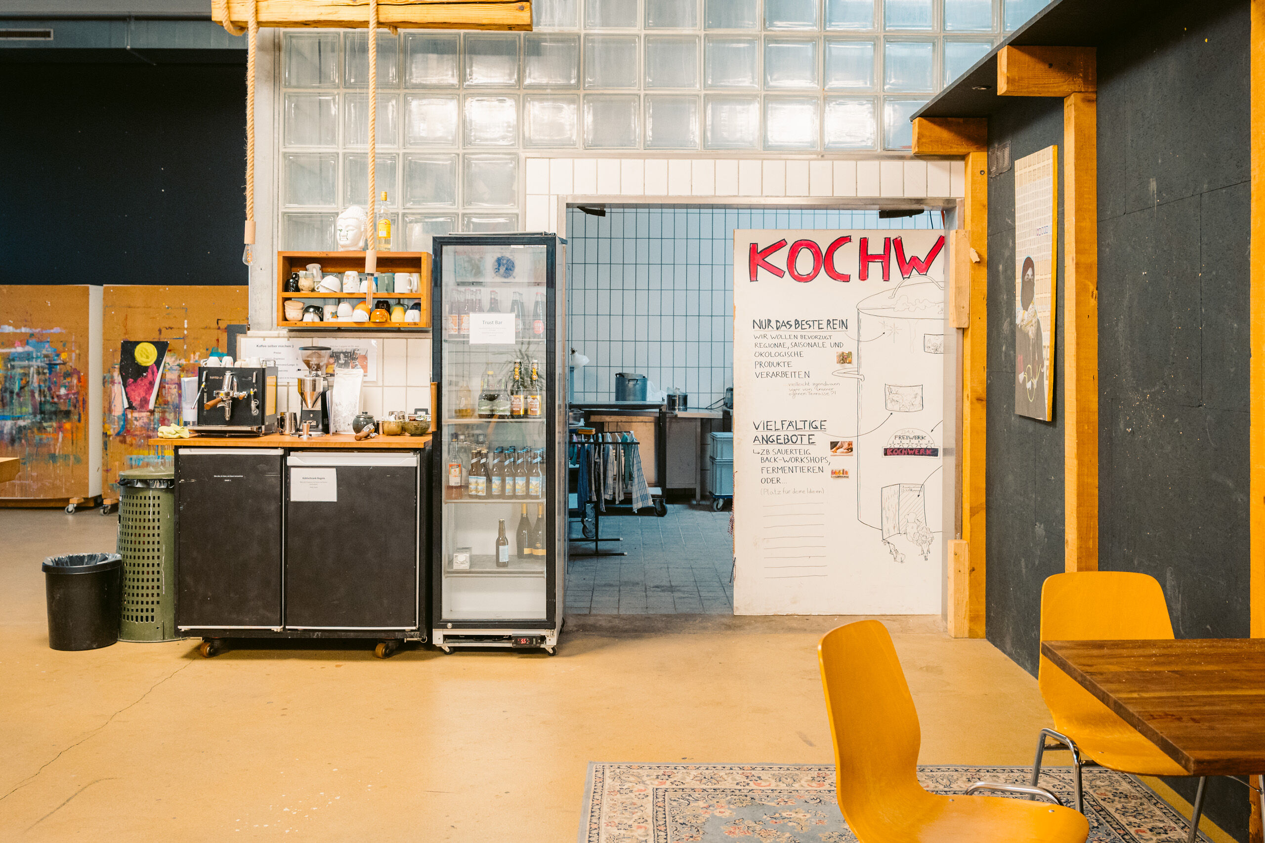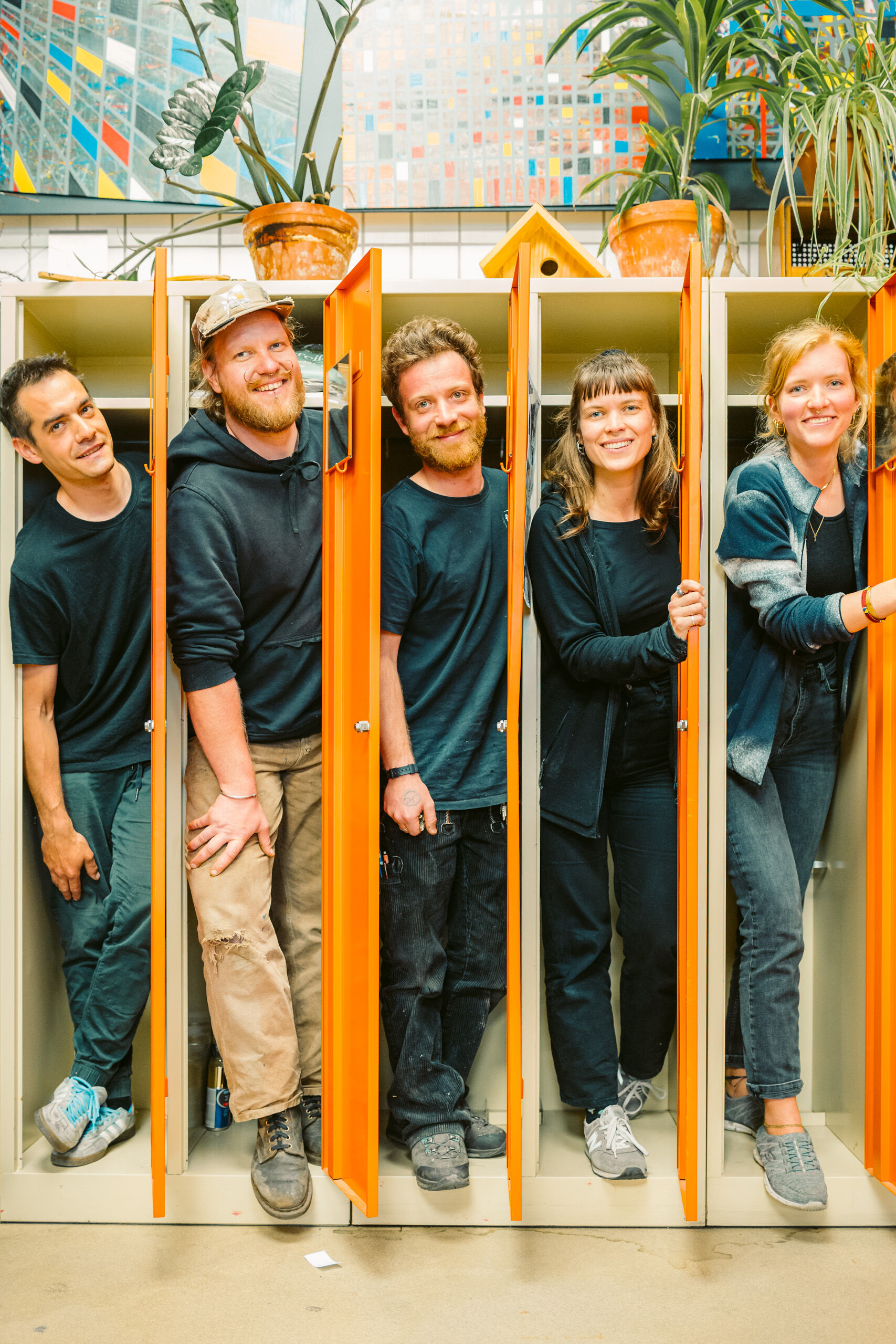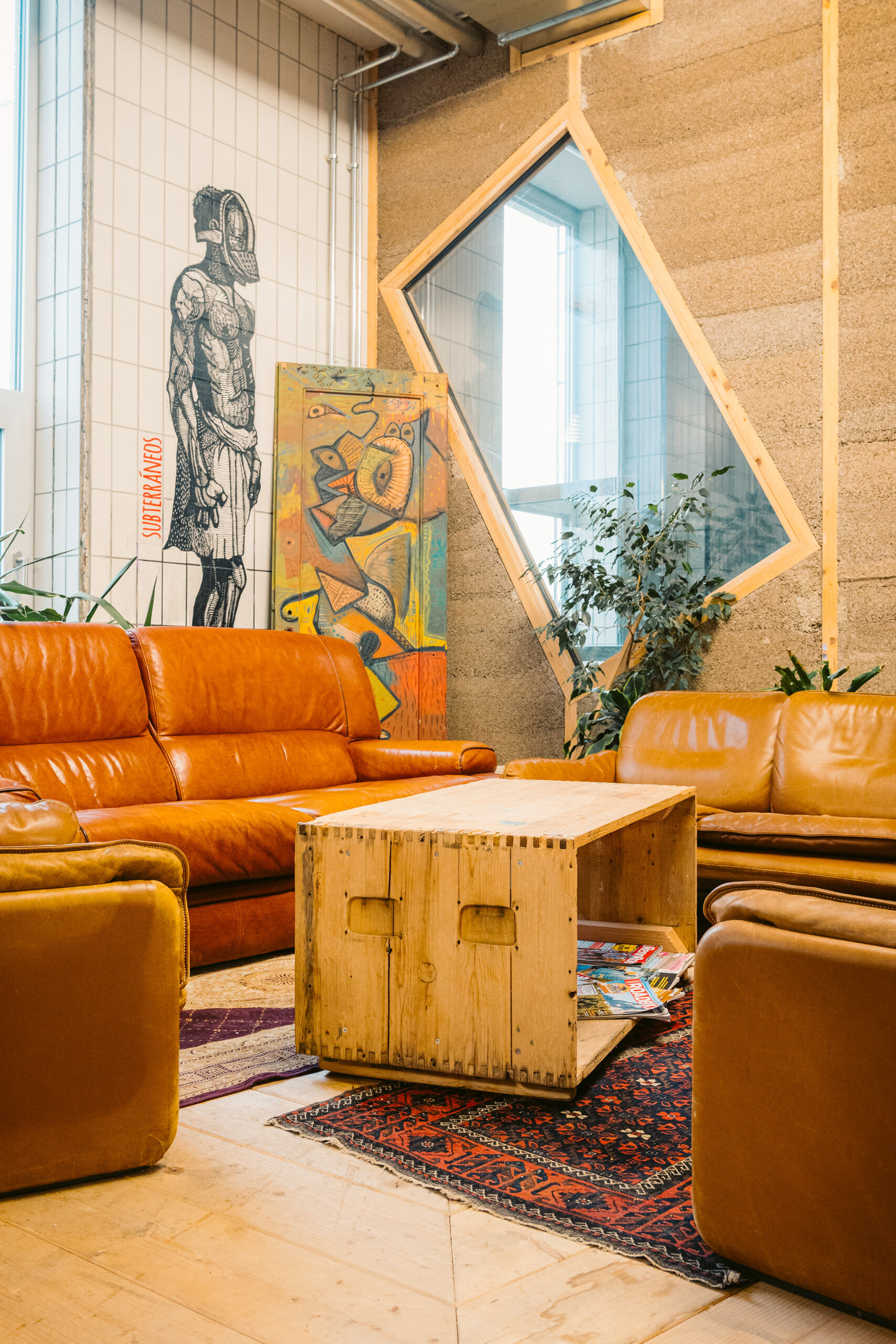 Mit dem Ende der Zwischennutzung mussten sich die Freunde entscheiden: Wars das, oder machen wir weiter, werden grösser, offener? Sie entschieden sich für letzteres. Und hier sitzen wir heute, in gemütlichen, alten Ledersofas auf dem selbstgezimmerten Podest. Schräg angebrachte Fenster bieten Einblick in die verschiedenen Werkstätten.