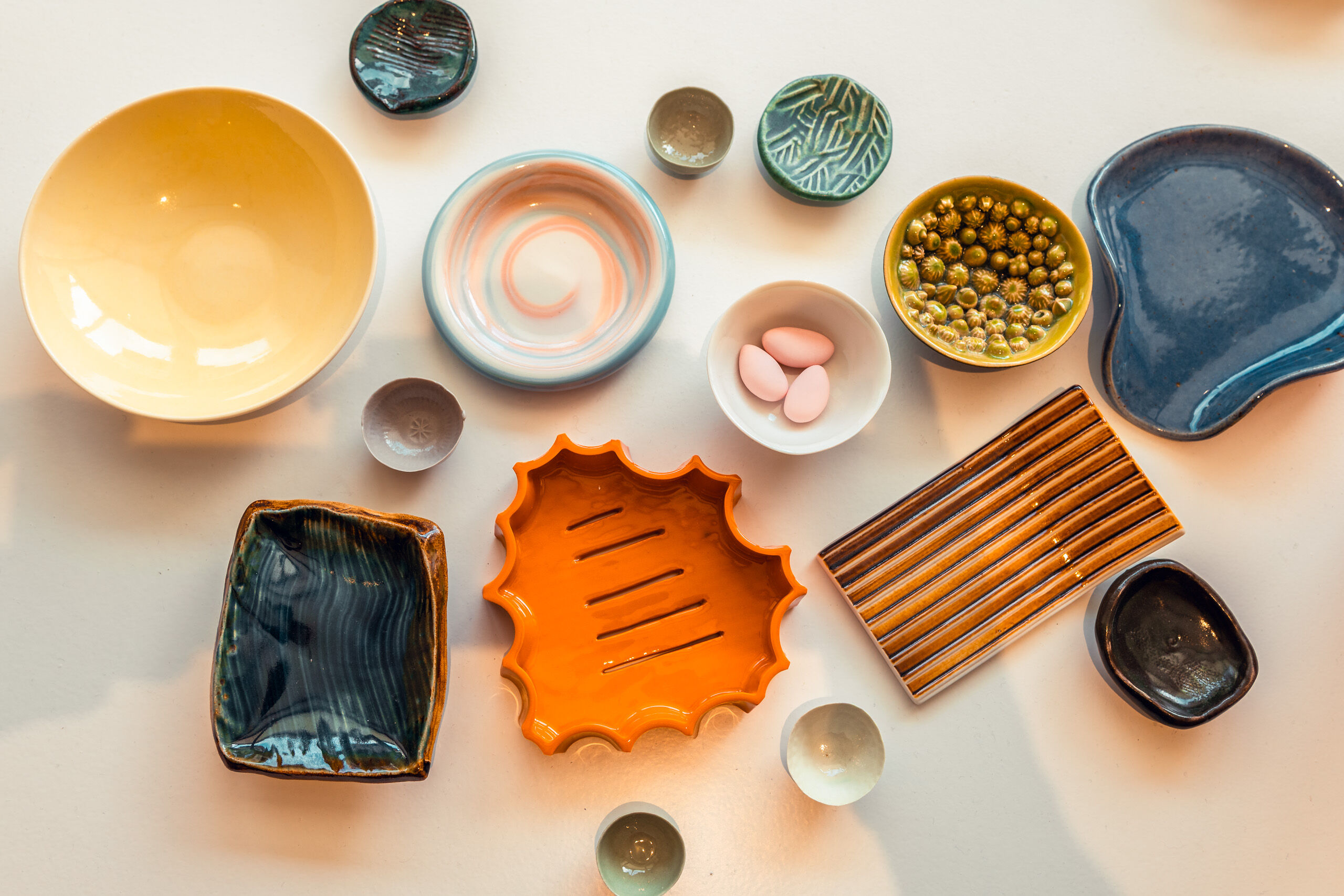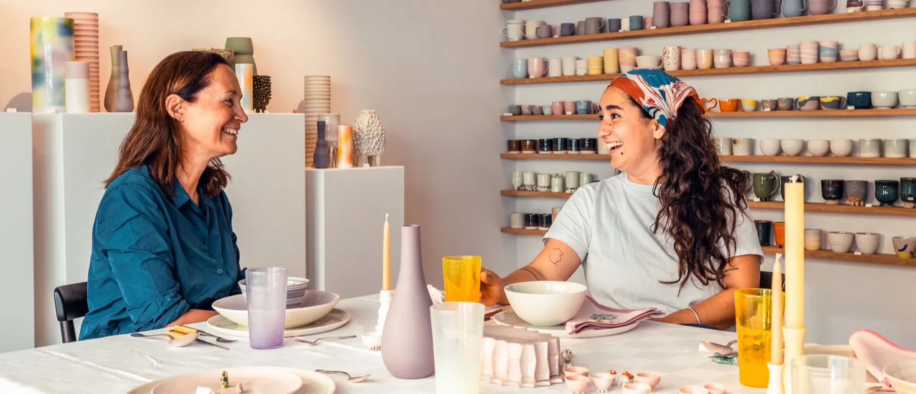 Doch, wie alle Keramikerinnen in Basel und der ganzen Schweiz, nur vom Verkauf ihrer Produkte können weder Zoe noch Gabriela leben. Sie und ihre Kollektiv-Kolleginnen leiten Werkstätten, geben Kurse, engagieren sich in anderen Projekten, machen Kunst. Helena Tapajnova arbeitet neben Keramik auch noch mit Glas und hat die ASAP-Studios mitbegründet. Esther Spychiger hat einen dermassen unverkennbaren Stil entwickelt, dass ihre organischen Gefässe heute unter anderem im Restaurant von Tanja Grandits zum Einsatz kommen. Auch Juliane Craemer und Barbara Wagner sind erfahrene Keramikerinnen, die regelmässig an Ausstellungen und Märkten teilnehmen. Barbara und Gabriela haben zusammen das Label abgedreht.ch und den Basler Keramikmarkt in der Markthalle gegründet. «Die Szene ist klein, wir kennen uns untereinander alle», schmunzelt Zoe. «Zudem haben Gabriela und ich beide argentinische Wurzeln – wir waren daher besonders schnell connected.»