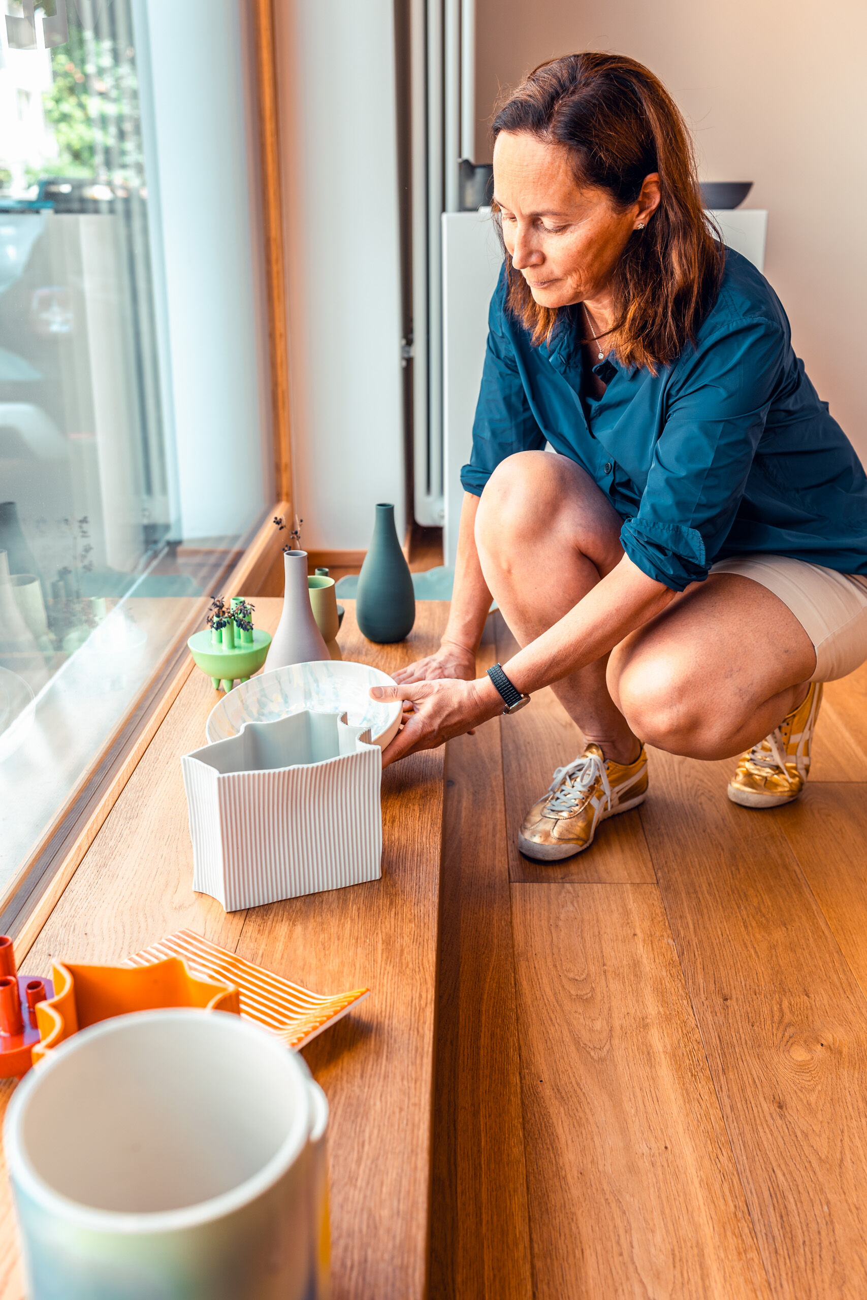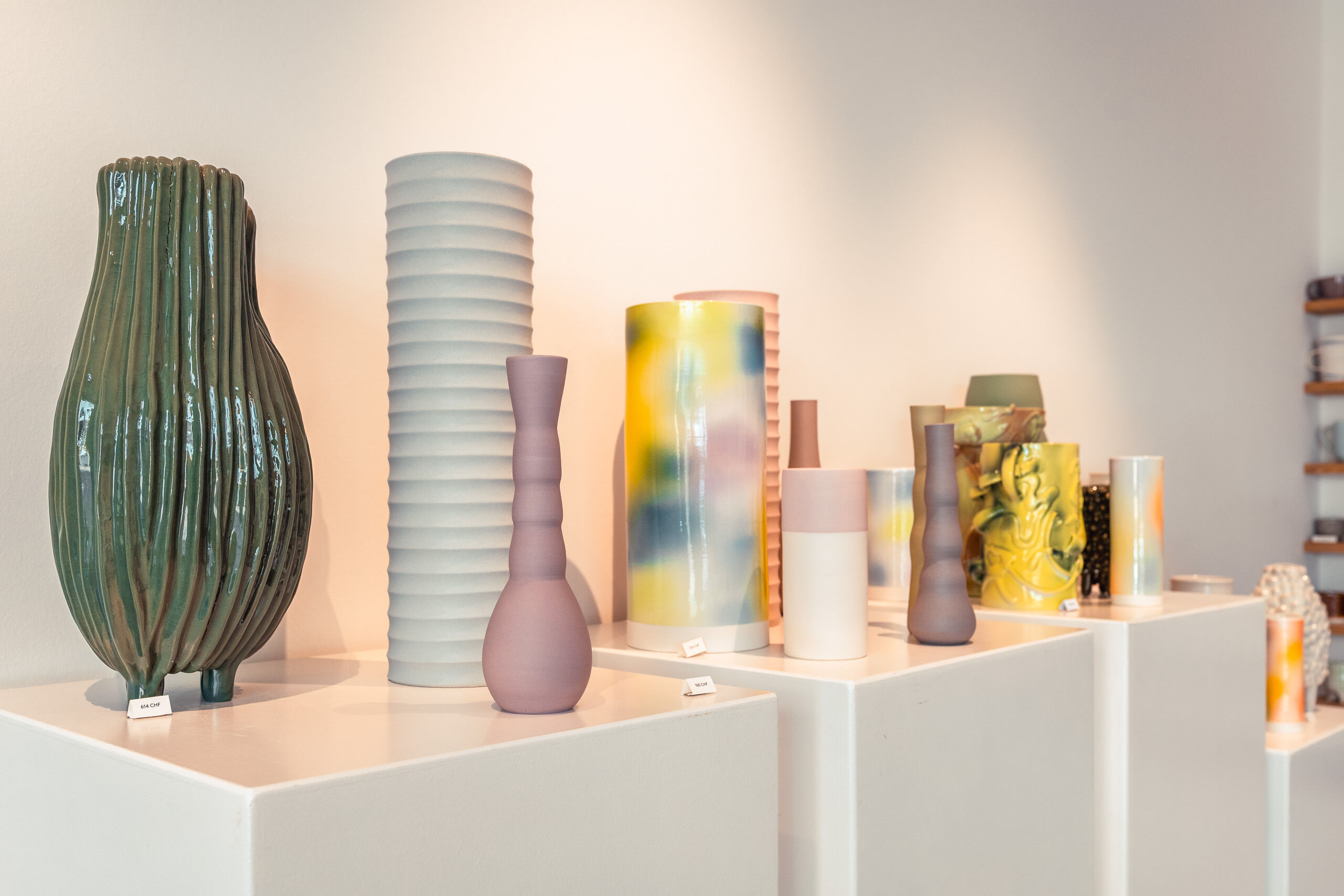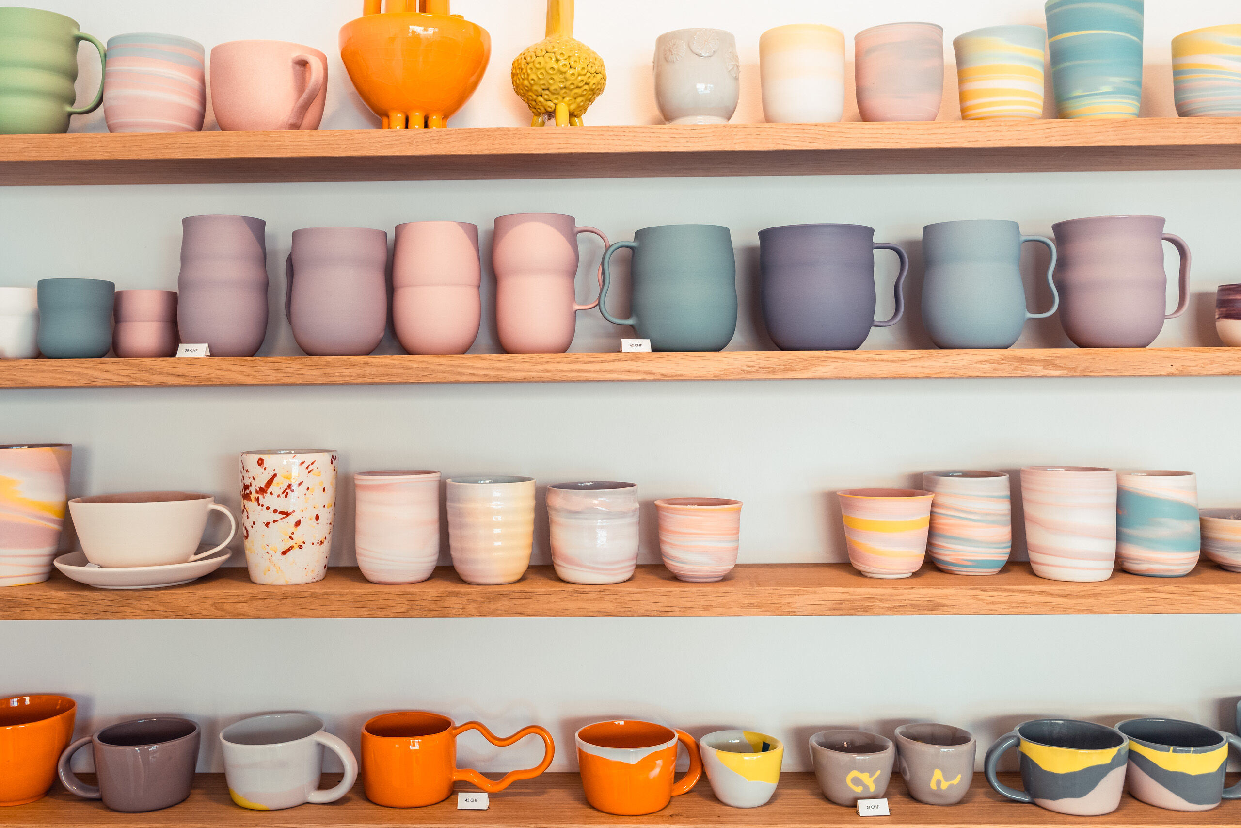Dass die sechs Frauen nun seit einem Jahr das Keramik Kollektiv an der Breisacherstrasse führen, ist aus einer Idee von Gabriela entstanden, der das Konzept auf Reisen aufgefallen ist. «In anderen Ländern gibt es Läden – oft an touristisch bester Lage – die von mehreren Töpfern gemeinsam betrieben werden», erzählt sie. «Alle präsentieren ihre Waren und teilen sich die Laden-Arbeit auf.» Genauso machen es die sechs Frauen nun auch. Der Laden ist ihr Schaufenster, denn ihre Arbeit, die in privaten Ateliers stattfindet, sieht man ansonsten kaum. Jeweils freitags und samstags öffnen sie ihre Türen, zweimal im Jahr organisieren sie einen Keramikmarkt. Auch Aufträge nehmen die sechs gerne entgegen, gestalten ganze Geschirrsets oder einzelne Vasen und Schalen nach Wunsch.